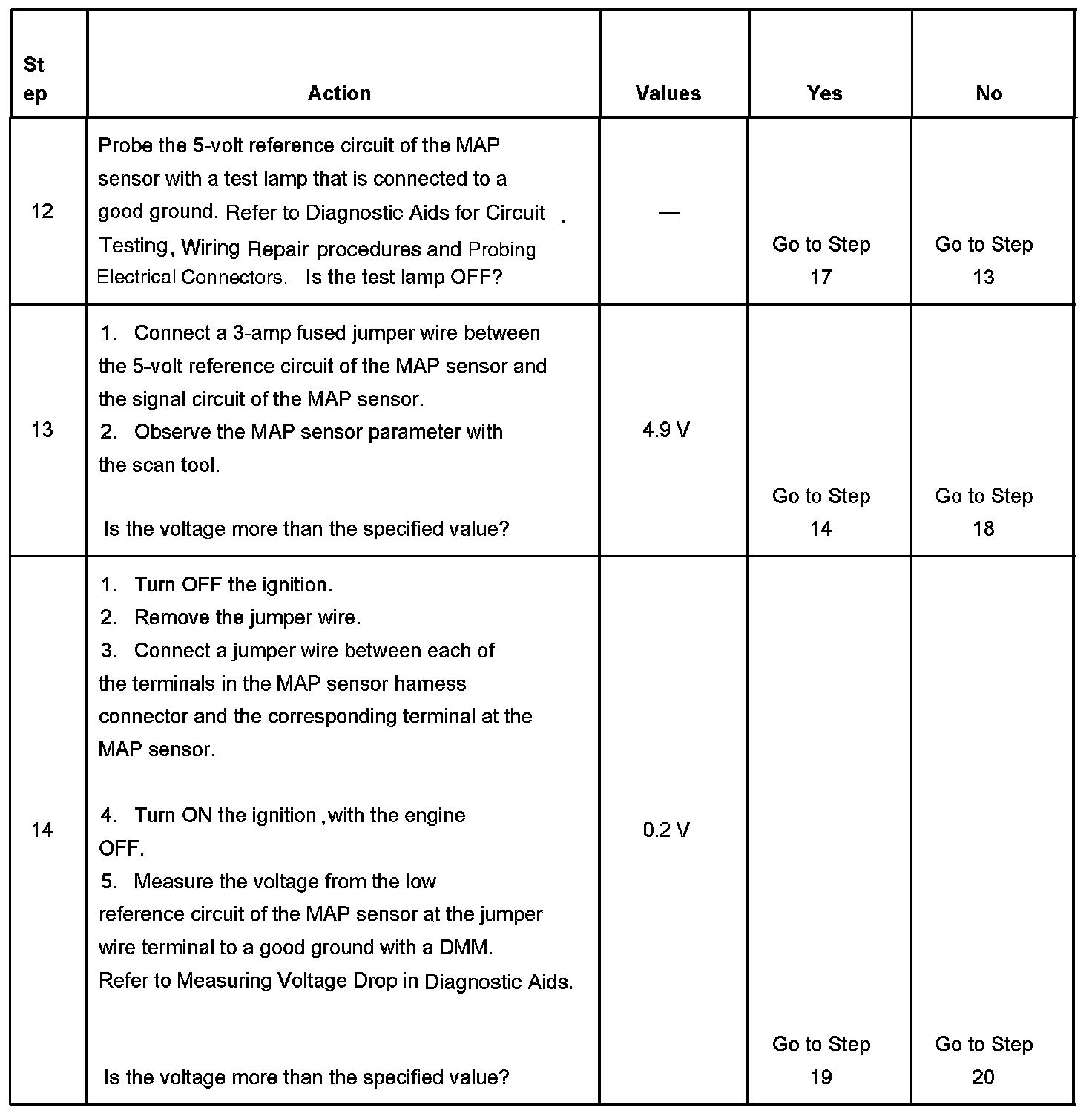 The number below refers to the step number on the diagnostic table.