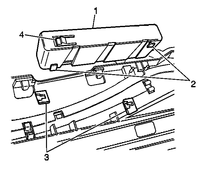2. Install the sunroof control module tabs (2) into the sunroof module assembly slots (3) located on the sunroof module assembly.