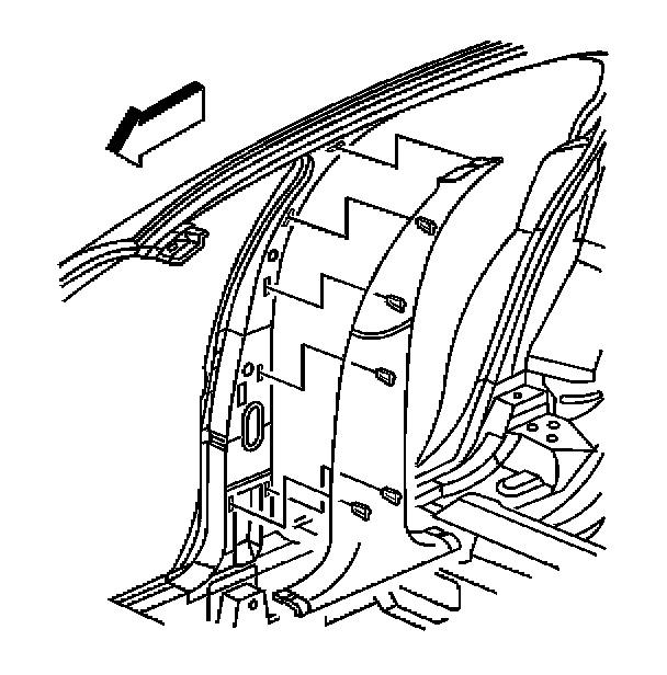 IMPORTANT: Release the passenger side center pillar trim garnish molding upper retainer.