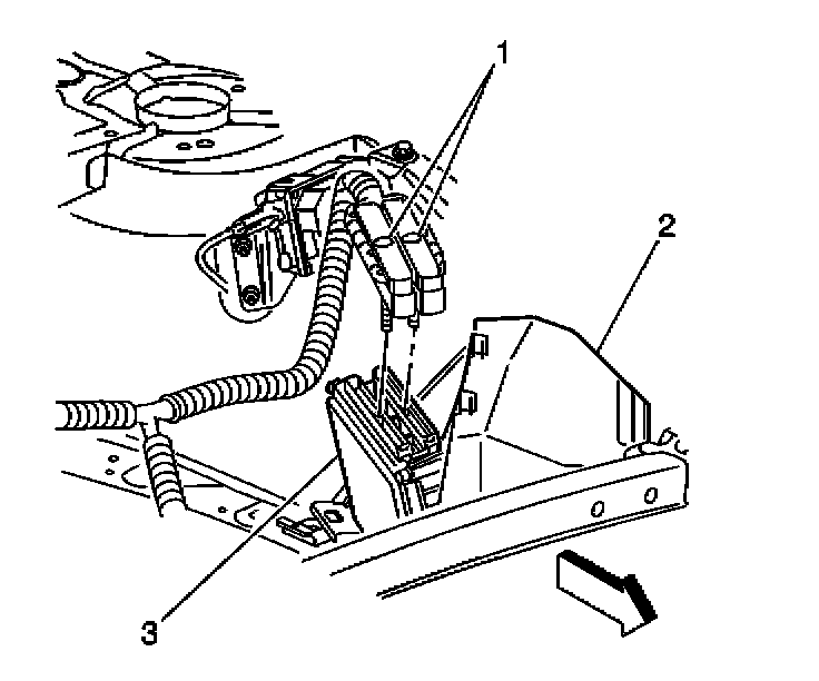 2. Carefully reinstall the PCM (3) and harness into the PCM housing (2).
