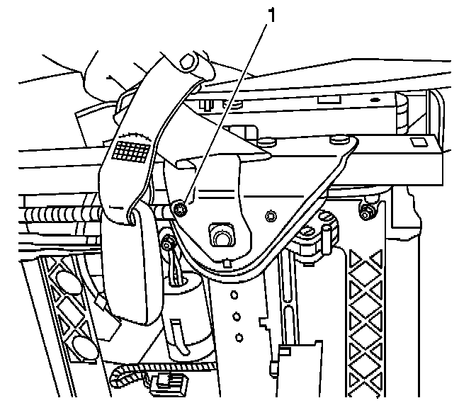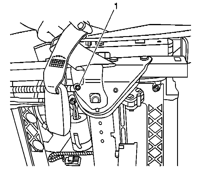 1. Install the center belt assembly to the seat assembly adjuster rail. The rivet (1) was installed for location purposes during production assembly and does not need to be reinstalled. However, if replaced seat installation difficulty may be reduced.
