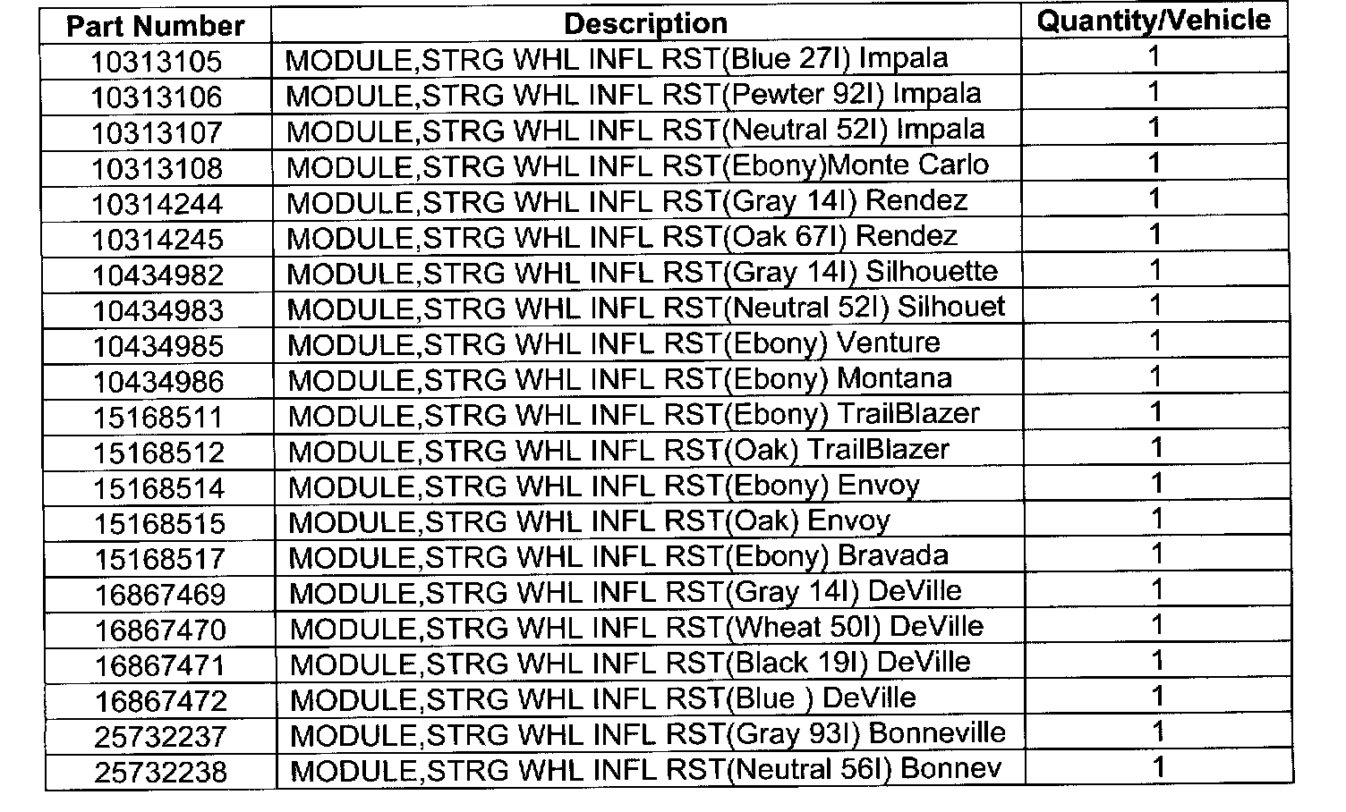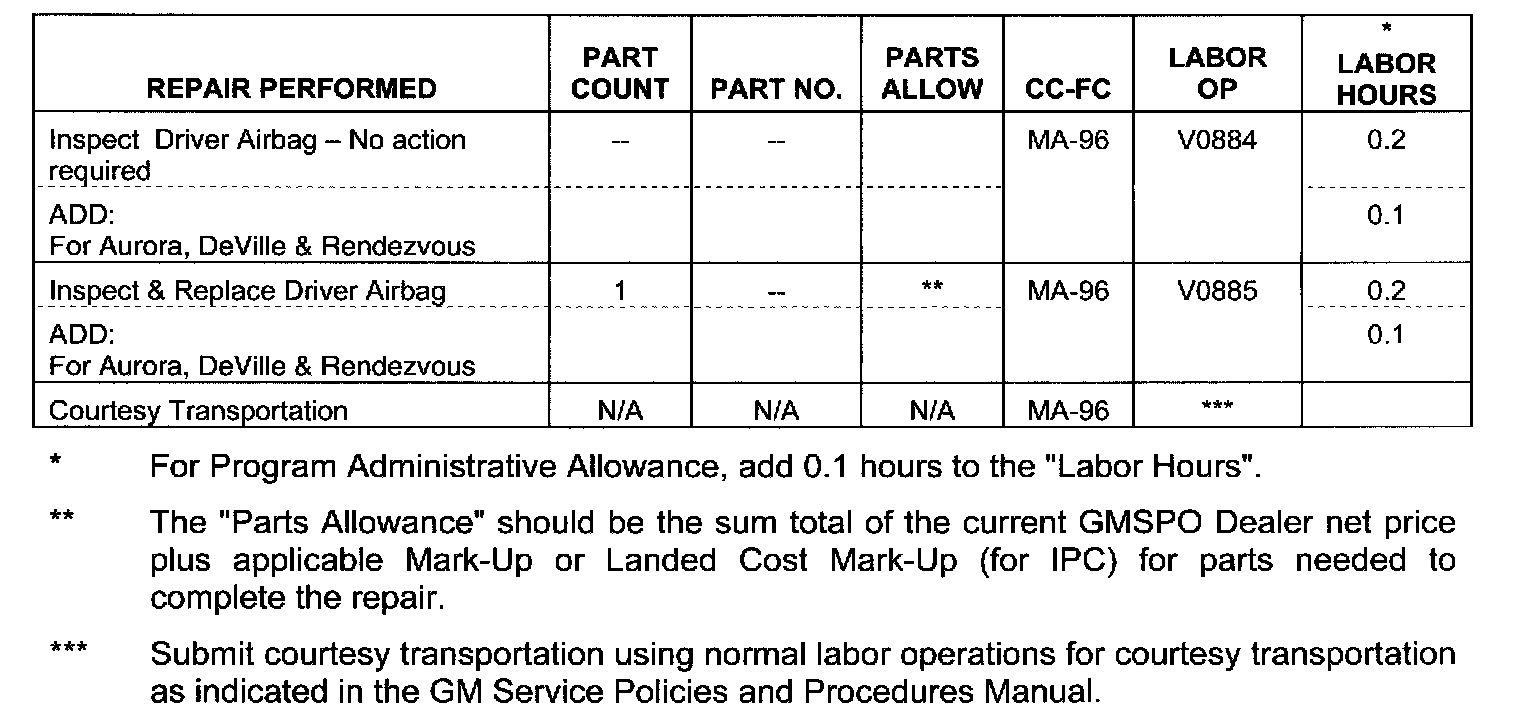 Involved are certain 2002 - 2003 Buick LeSabre, Rendezvous; Cadillac DeVille; Chevrolet Impala, Monte Carlo, TrailBlazer, Venture; GMC Envoy; Oldsmobile Aurora, Bravada, Silhouette; Pontiac Bonneville, and Montana model vehicles and built within these VIN breakpoints shown.