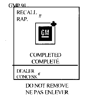 Put the Recall Identification Label on a clean and dry surface of the radiator core support in an area that will be visible to people servicing the vehicle. Additional Recall Identification Labels for Canadian dealers can be obtained from DGN by calling 1-800-668-5539 (Monday-Friday, 8:00 a.m. to 5:00 p.m. EST). Ask for Item Number GMP 91 when ordering.