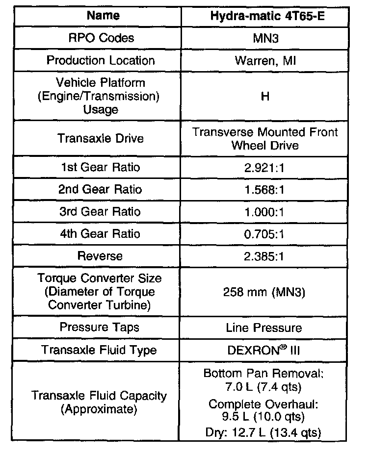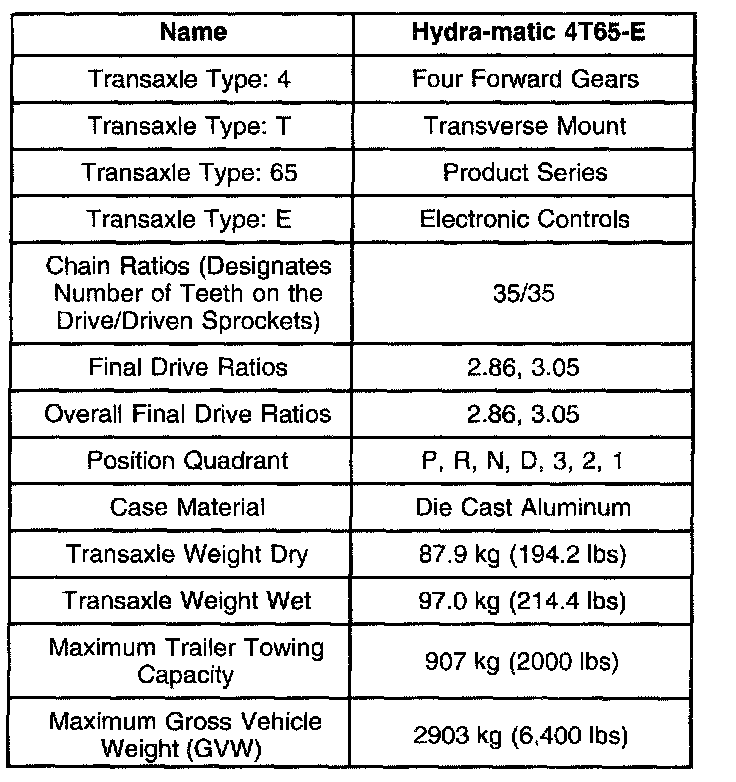 Transmission General Specifications
