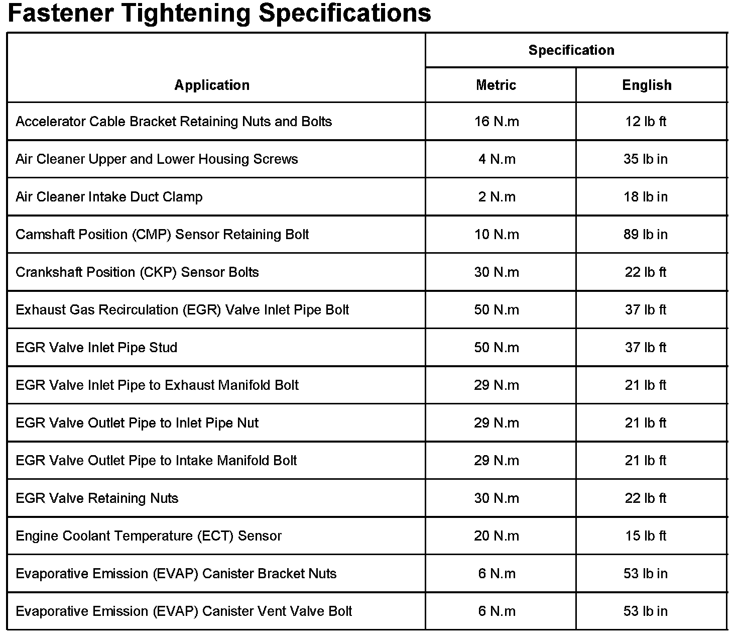 Fastener Tightening Specifications Part 1: