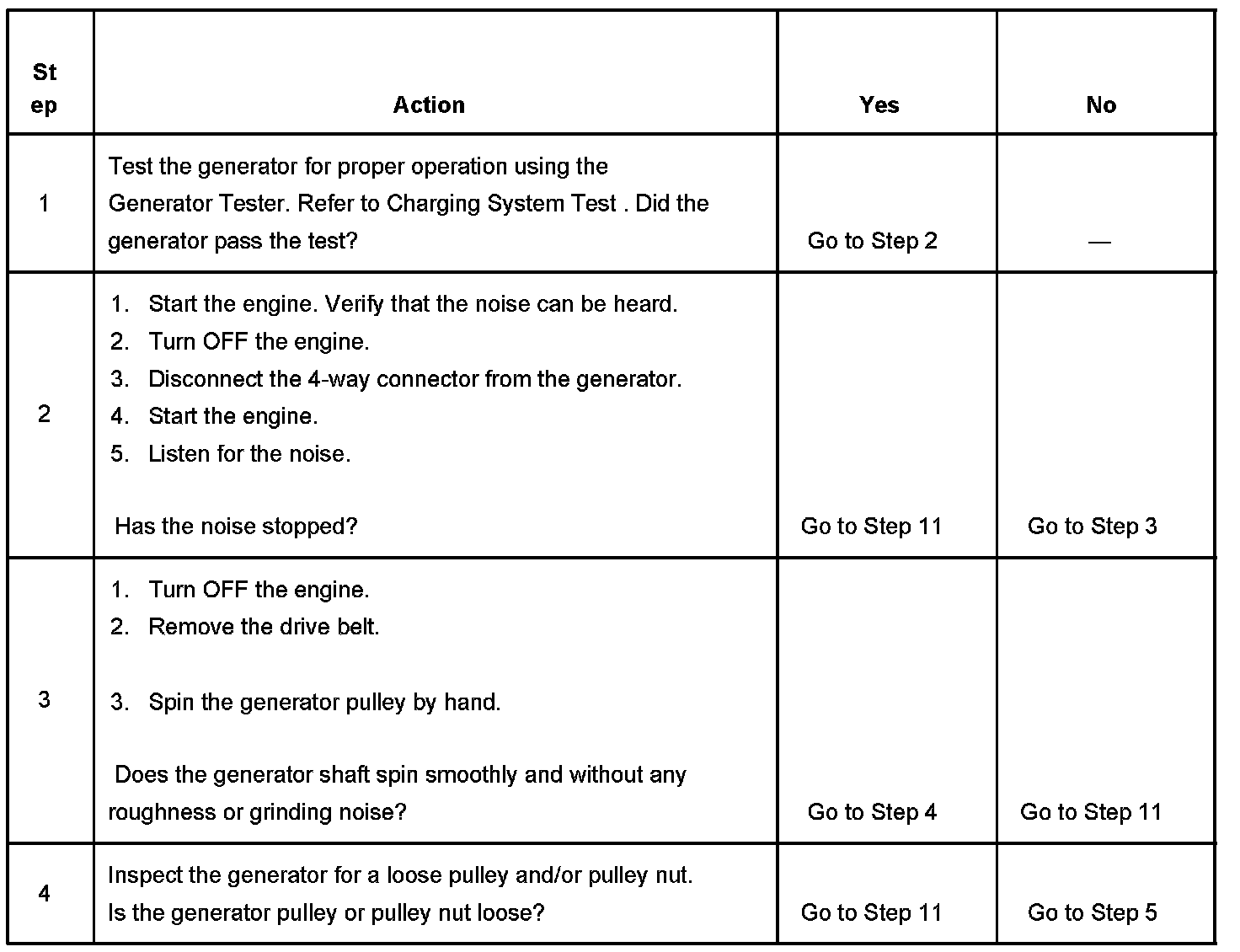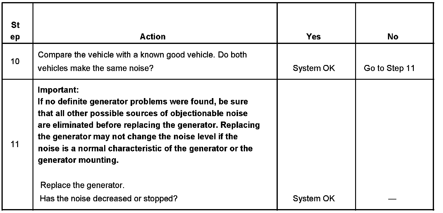 Noise from a generator may be due to electrical or mechanical noise. Electrical noise or magnetic whine usually varies with the electrical load placed on the generator and is a normal operating characteristic of all generators. When diagnosing a noisy generator, it is important to remember that loose or misaligned components around the generator may transmit the noise into the passenger compartment and that replacing the generator may not solve the problem.