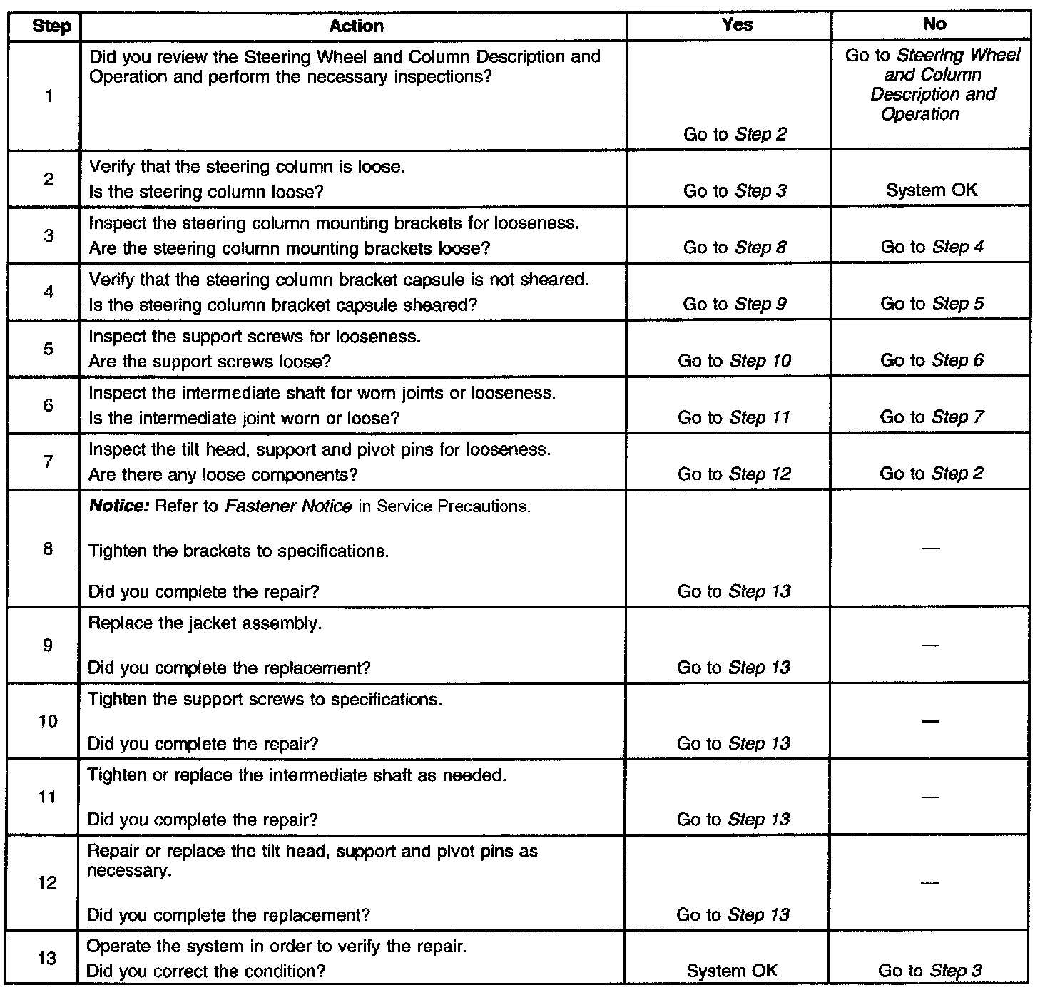 Looseness In Steering Column