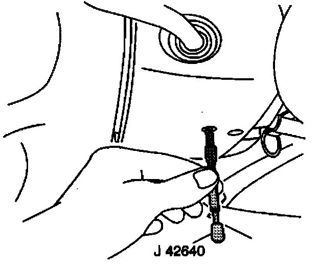1. Lock the steering column by installing J42640 into the underside of the steering column.