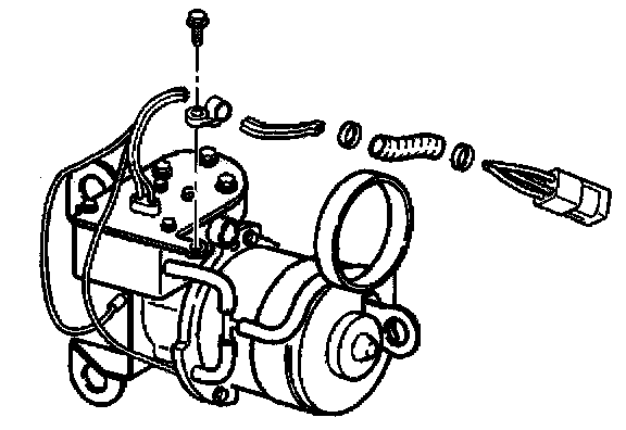 6. Install four wires in the harness tie and install the harness tie on the air compressor head with the bolt.