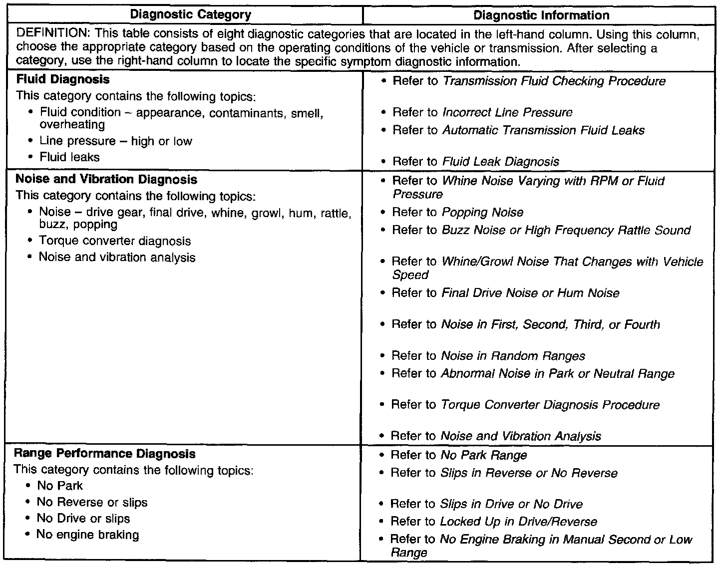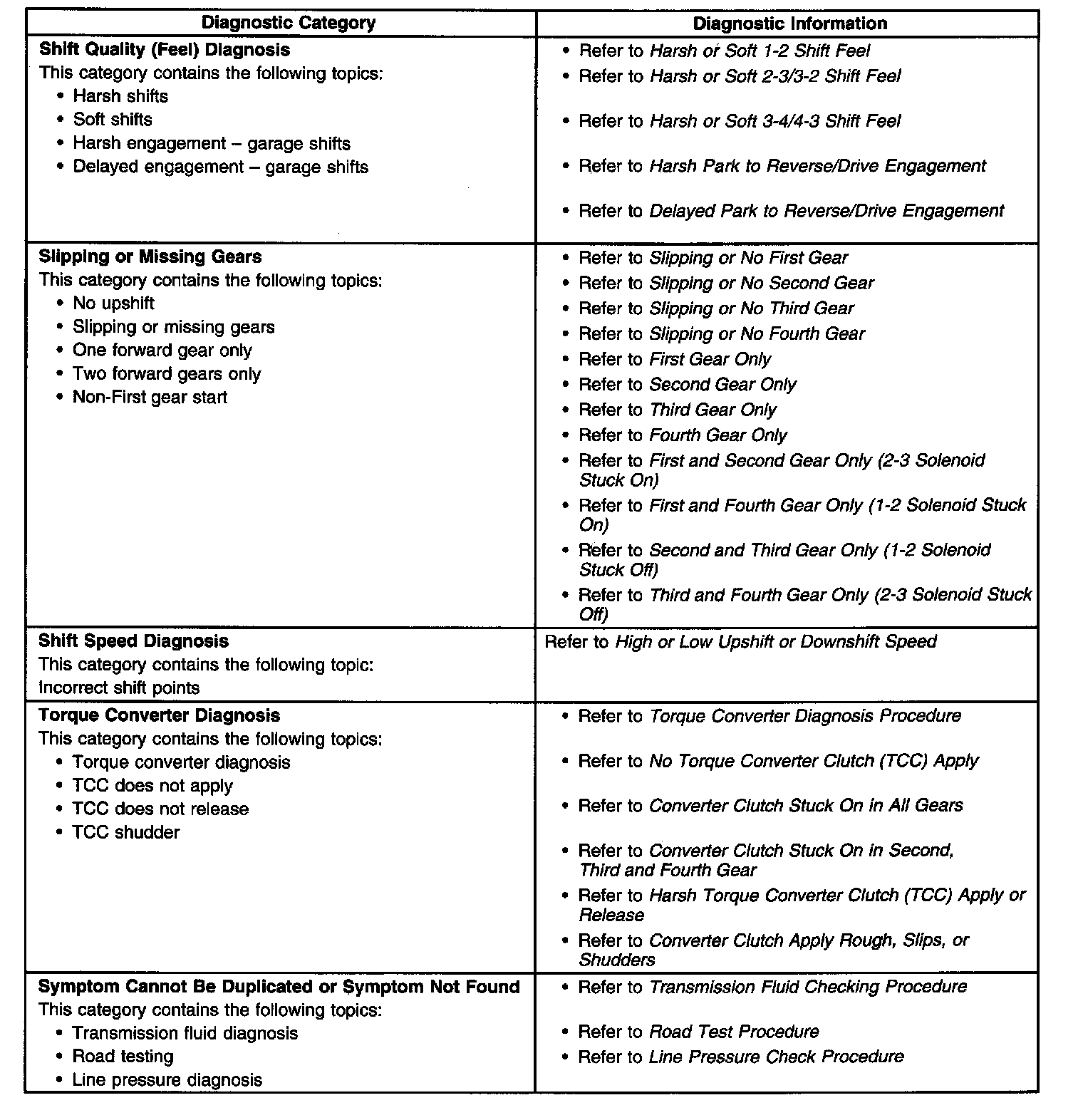- Symptoms - Automatic Transmission