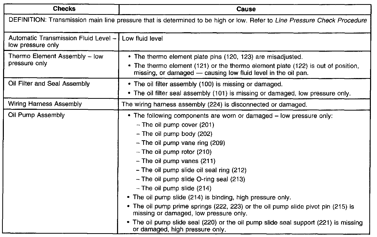 Incorrect Line Pressure