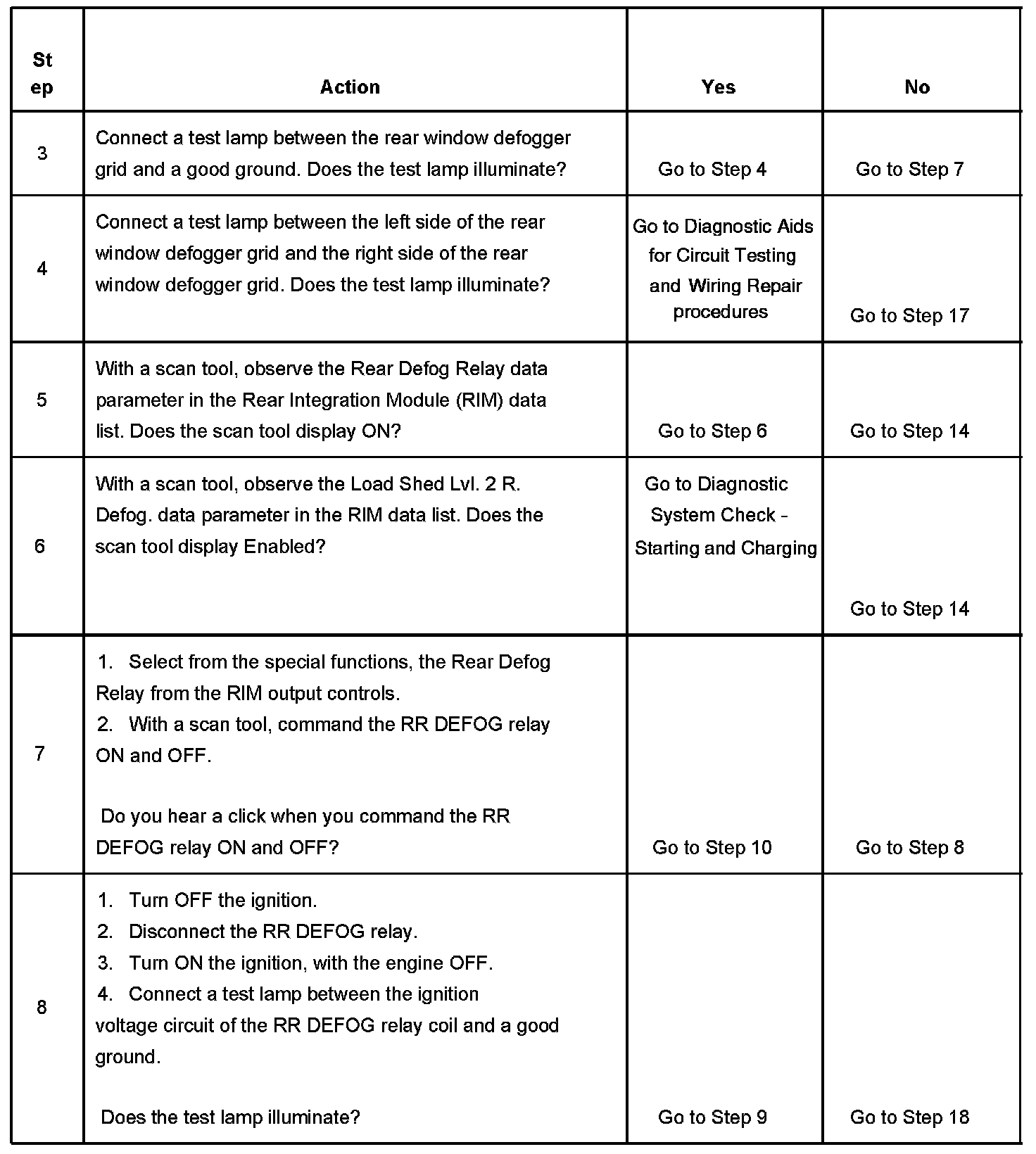 The numbers below refer to the step numbers on the diagnostic table.