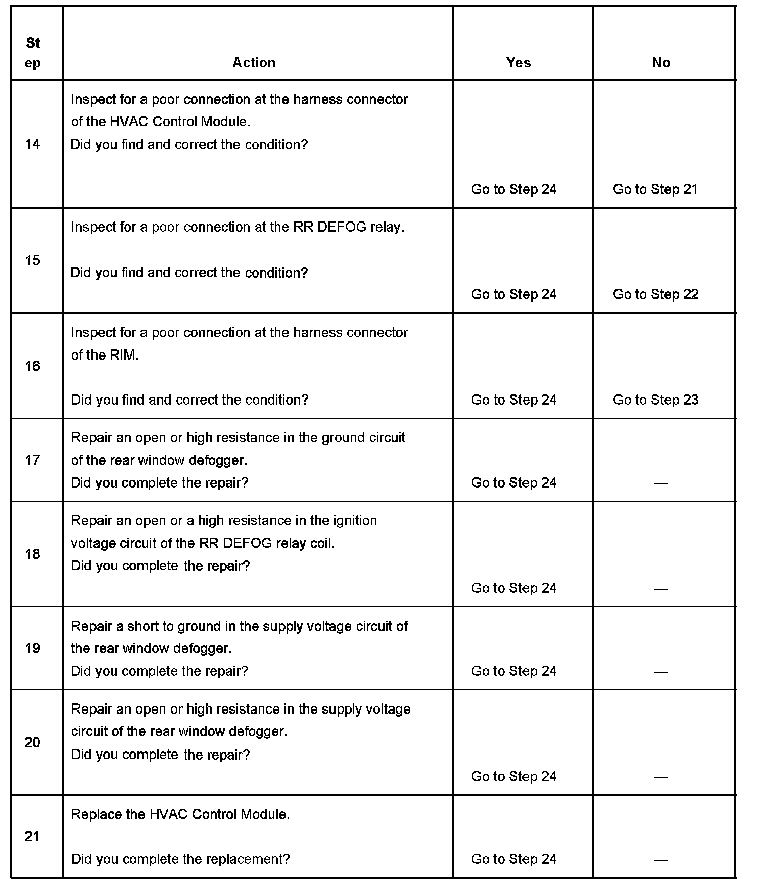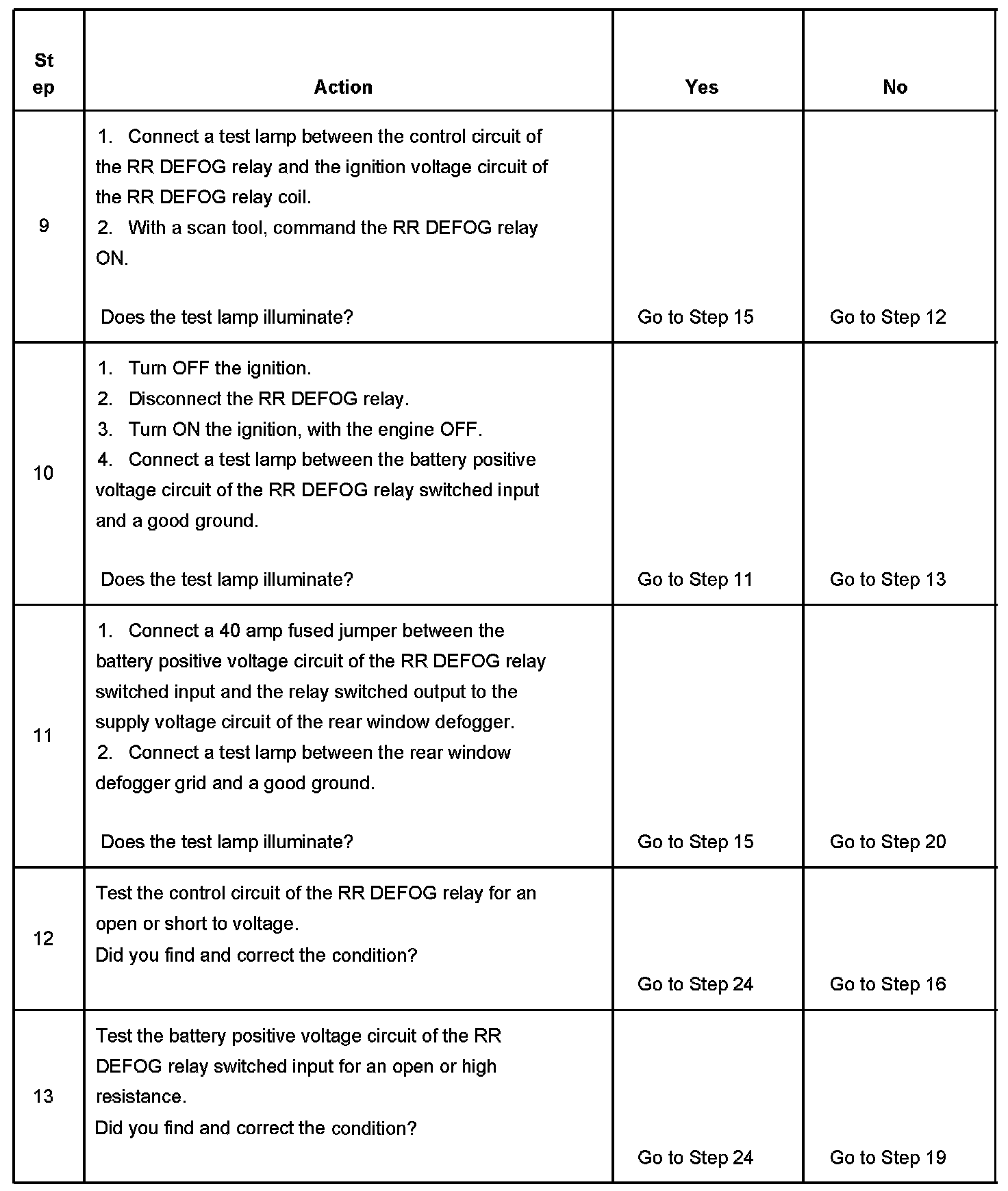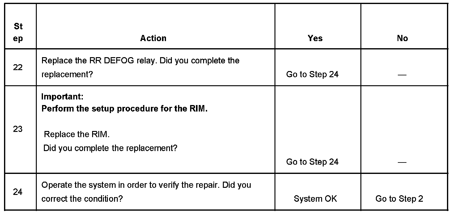 7. Gain access to the RR DEFOG relay and listen for an audible click when the relay operates. Command both the ON and OFF states of the RR DEFOG relay. Repeat the commands as necessary.