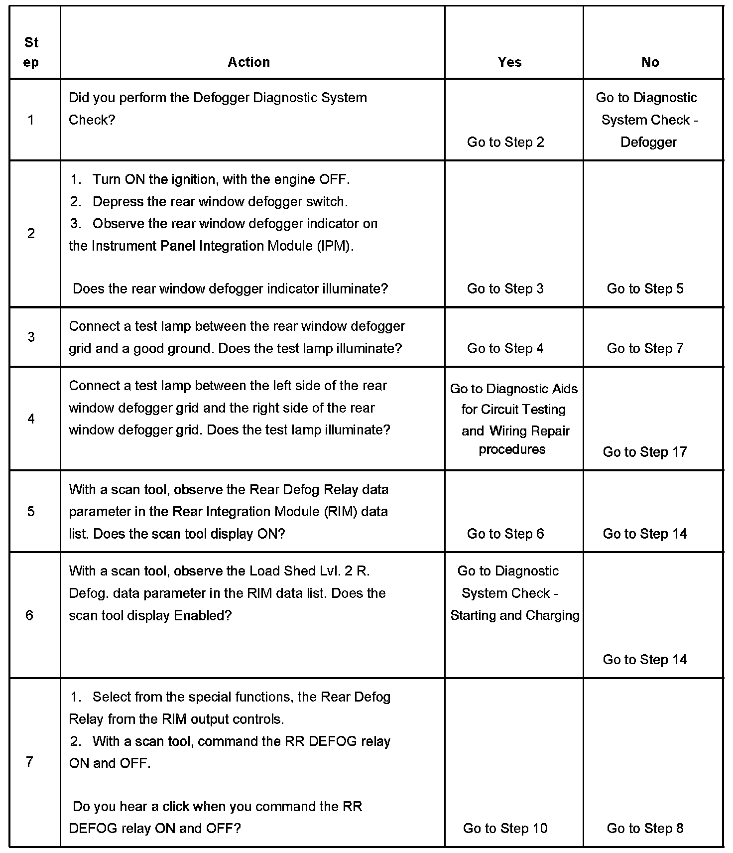 The numbers below refer to the step numbers on the diagnostic table.