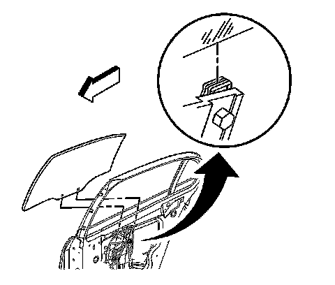 1. Install the window down into the door assembly ensuring that the front of the window is in the front run channel and the rear is outboard of the division post.