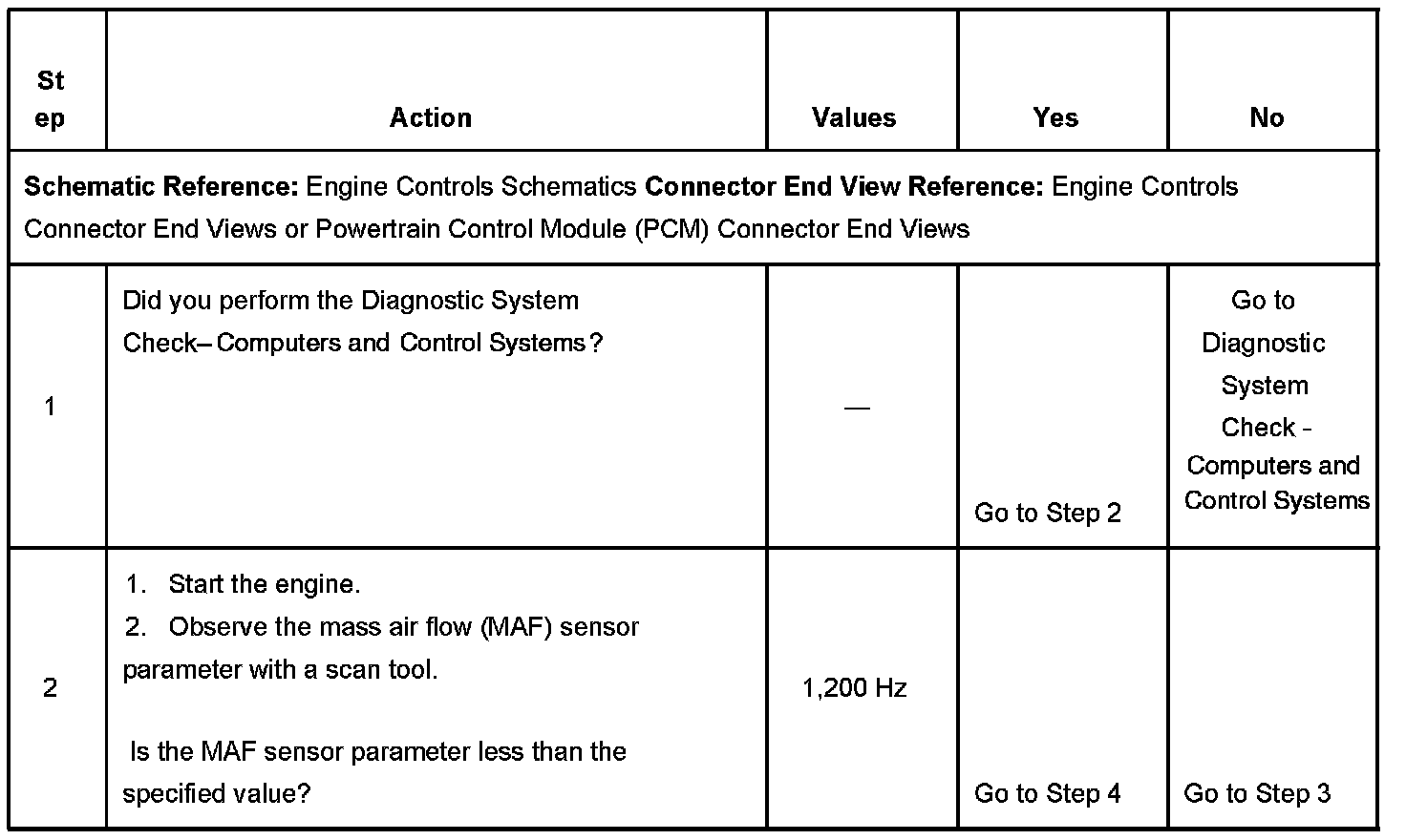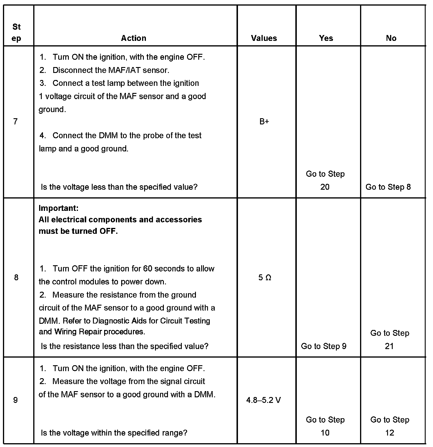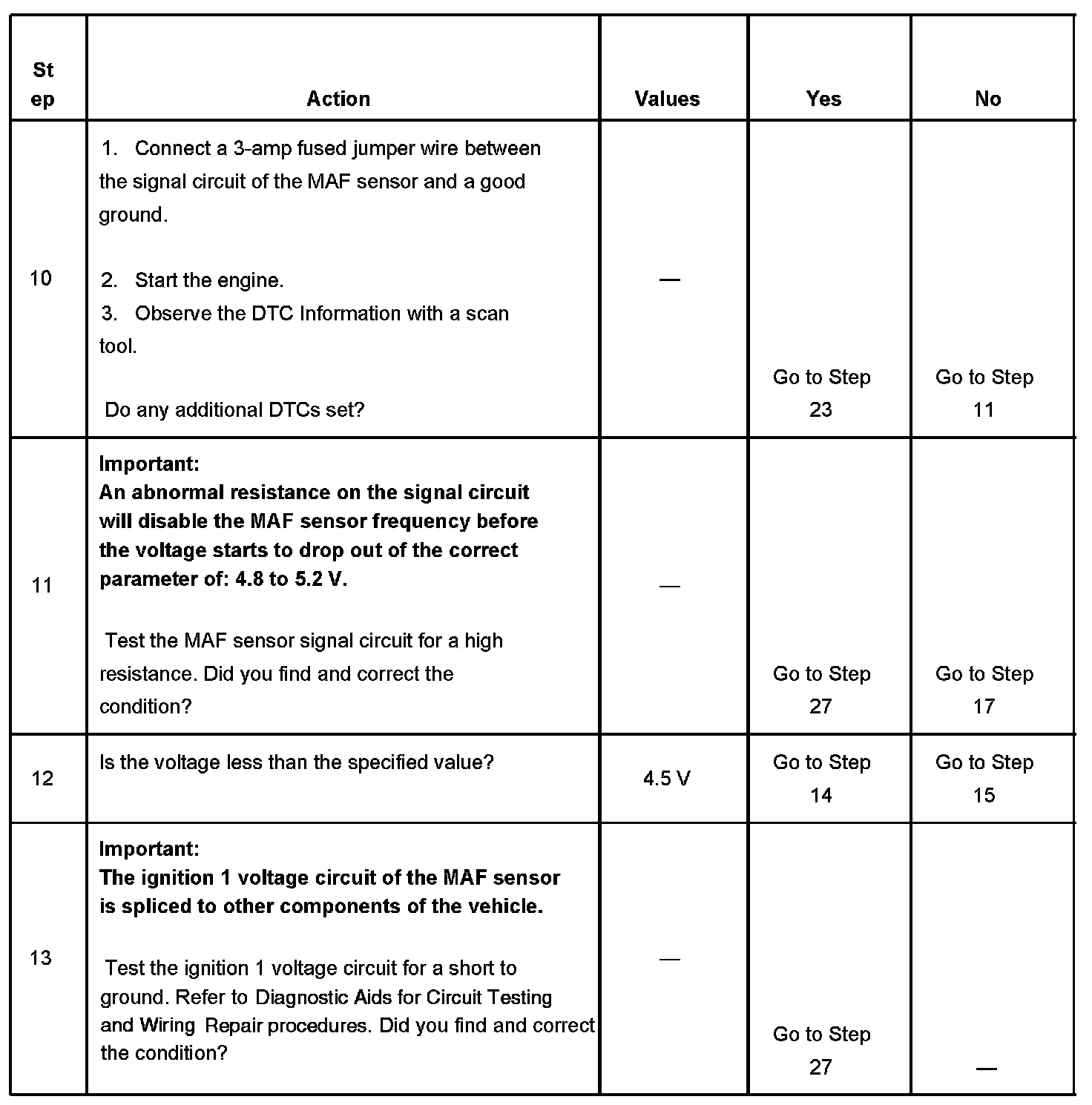 10. This step tests the signal circuit of the MAF sensor for a short to another 5-volt reference circuit.