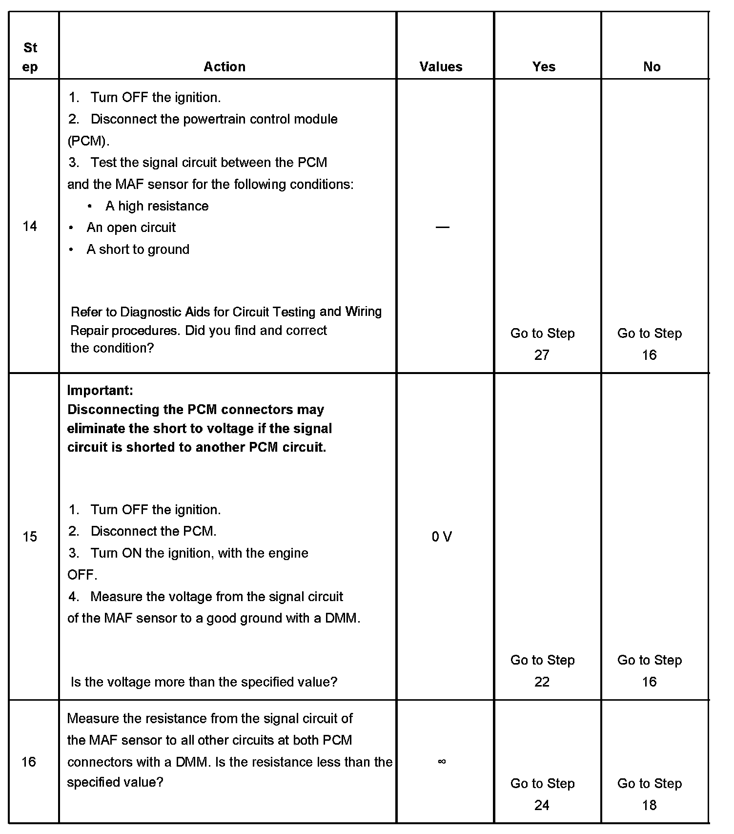 16. This step verifies that the signal circuit is not shorted to any other PCM circuit.