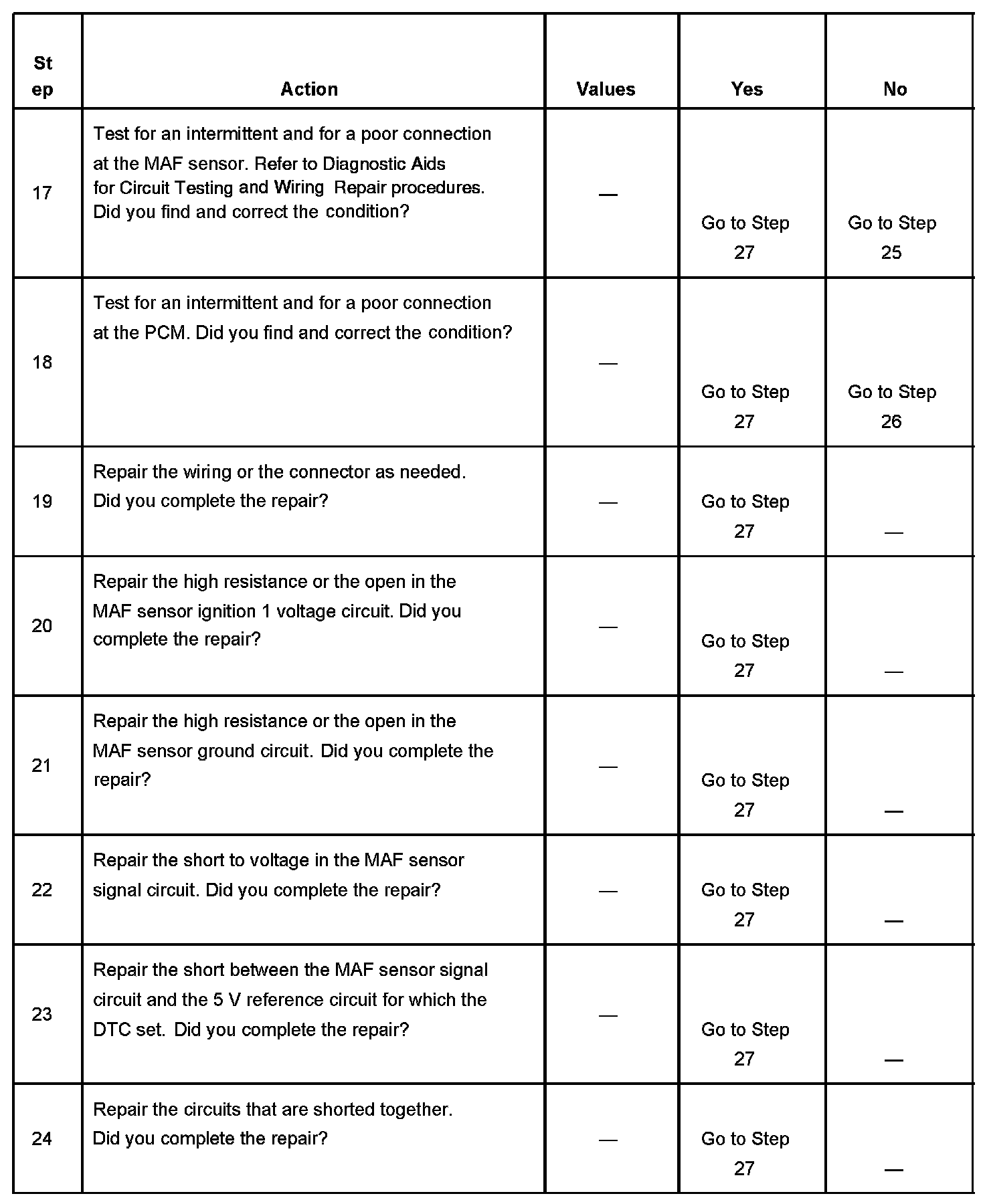- A high resistance of 20 ohms or more on the ground circuit of the MAF sensor may cause this DTC to set. A high resistance may cause a driveability concern before this DTC sets.