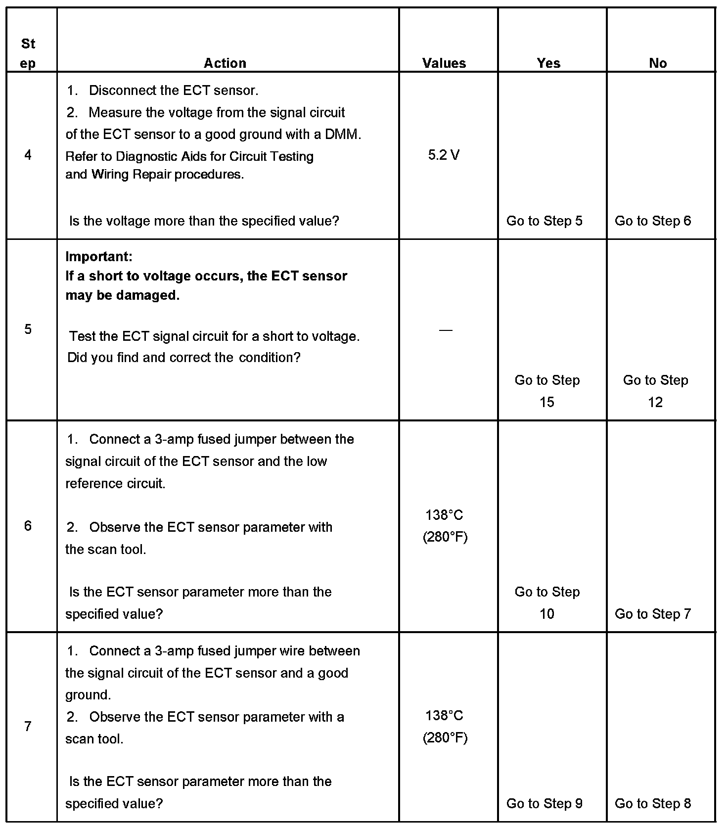 - Use the Temperature vs Resistance table in order to test the ECT sensor.