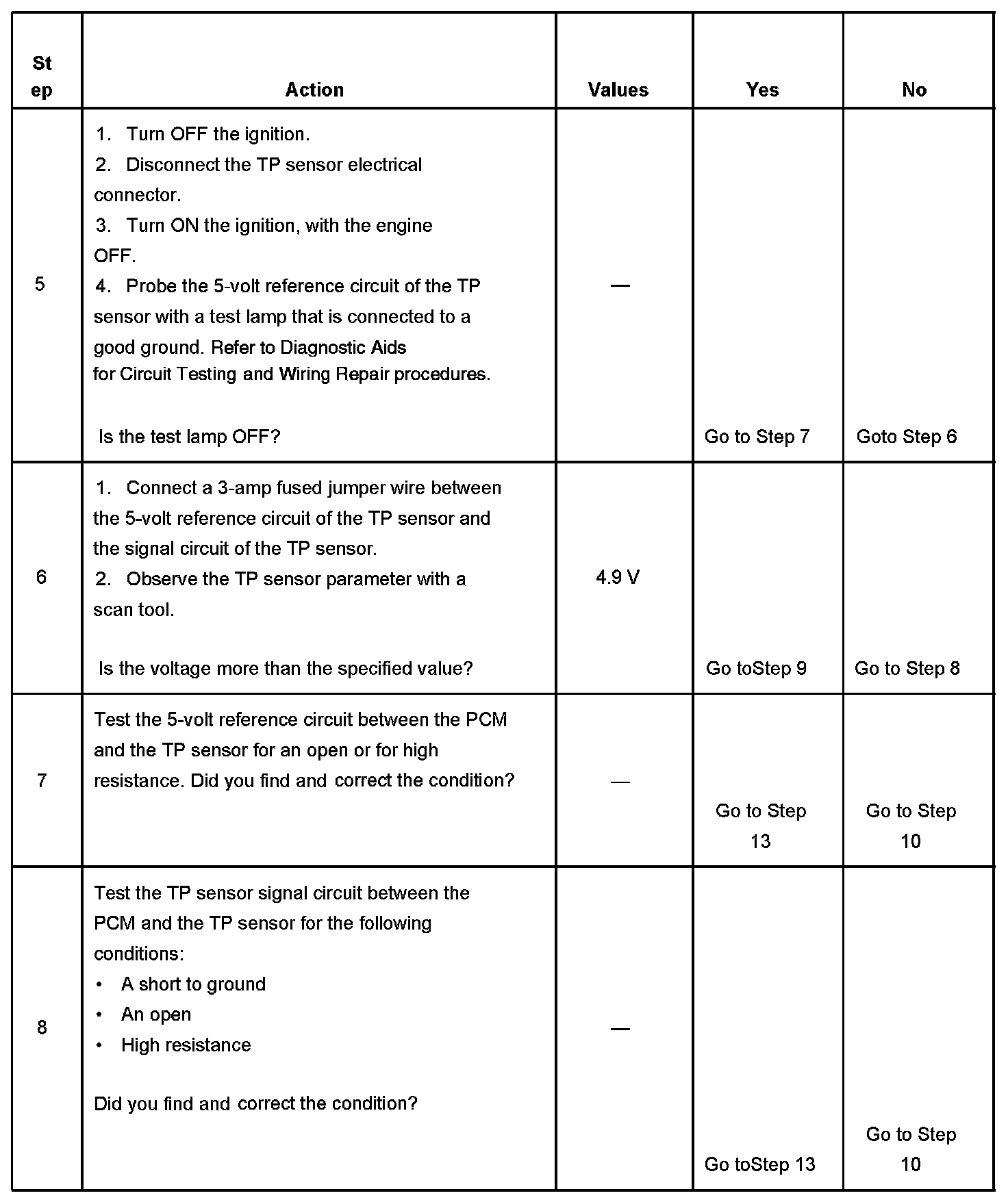 5. This step determines if the 5 volts supplied by the PCM is available to the sensor. It also determines if there is sufficient current flow in the circuit.