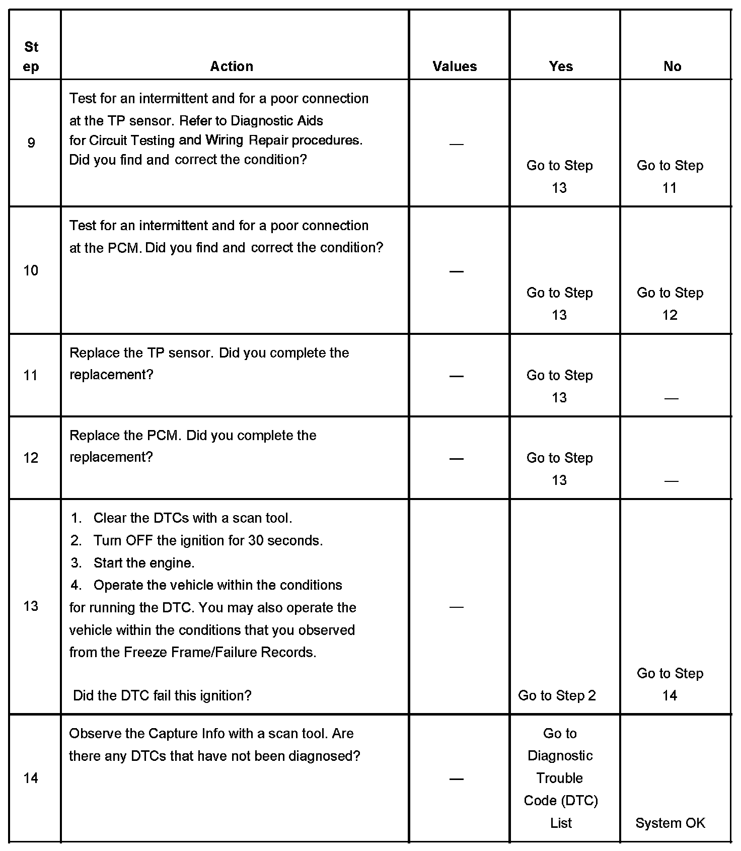 The number below refers to the step number on the diagnostic table.