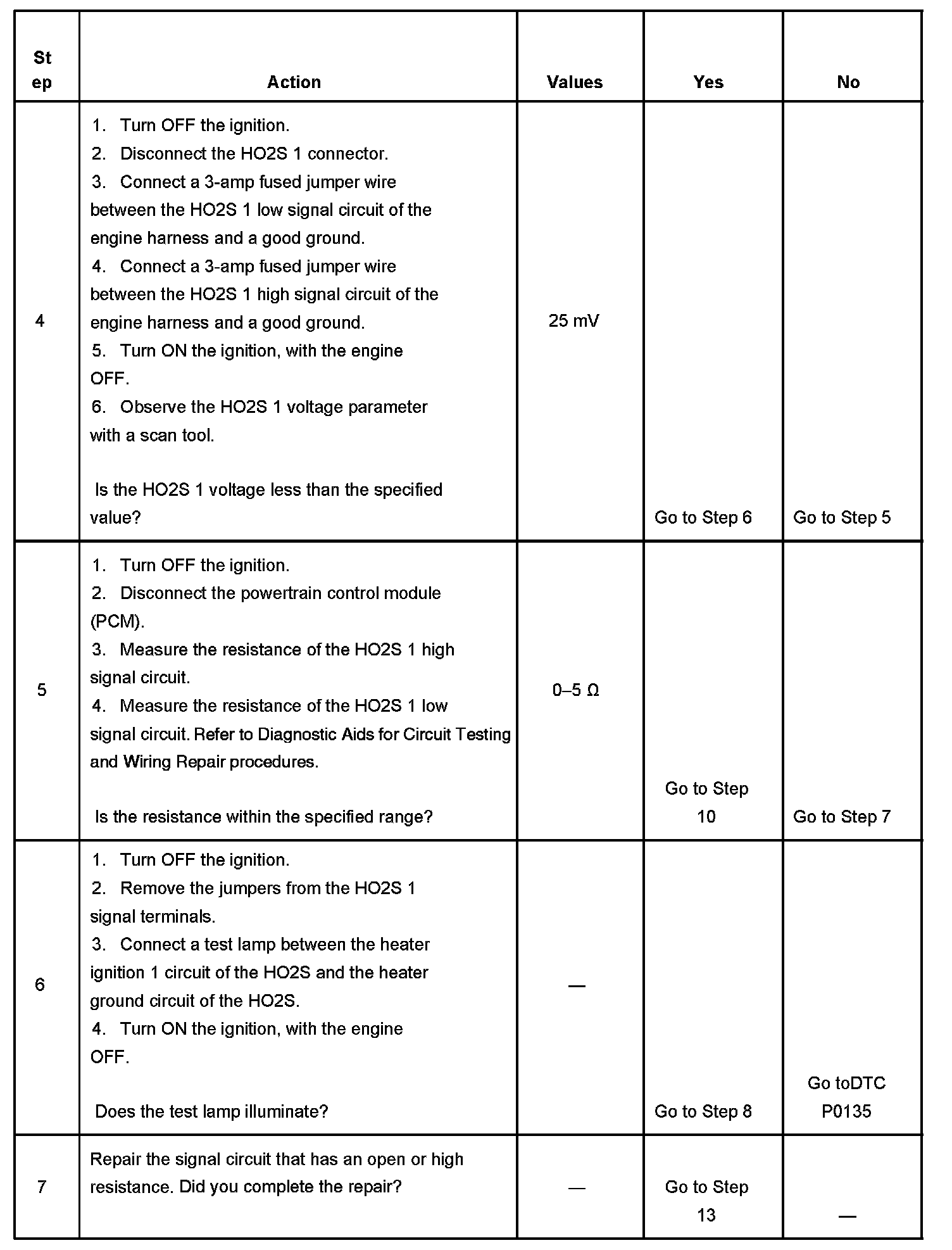 6. This step verifies that there are functional HO2S 1 heater power and ground circuits.