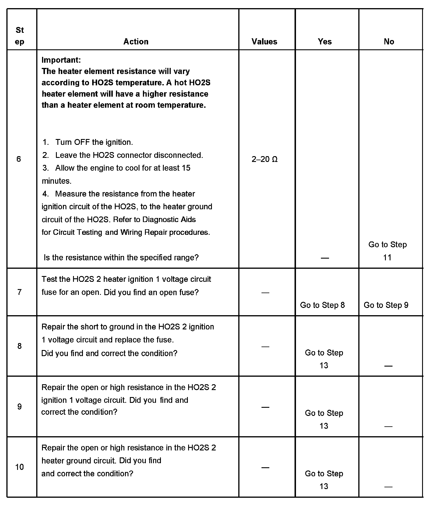 6. This test must not be performed until the HO2S 2 heater has cooled and stabilized for at least 15 minutes. Heater resistance is typically about 5 ohms at room temperature.