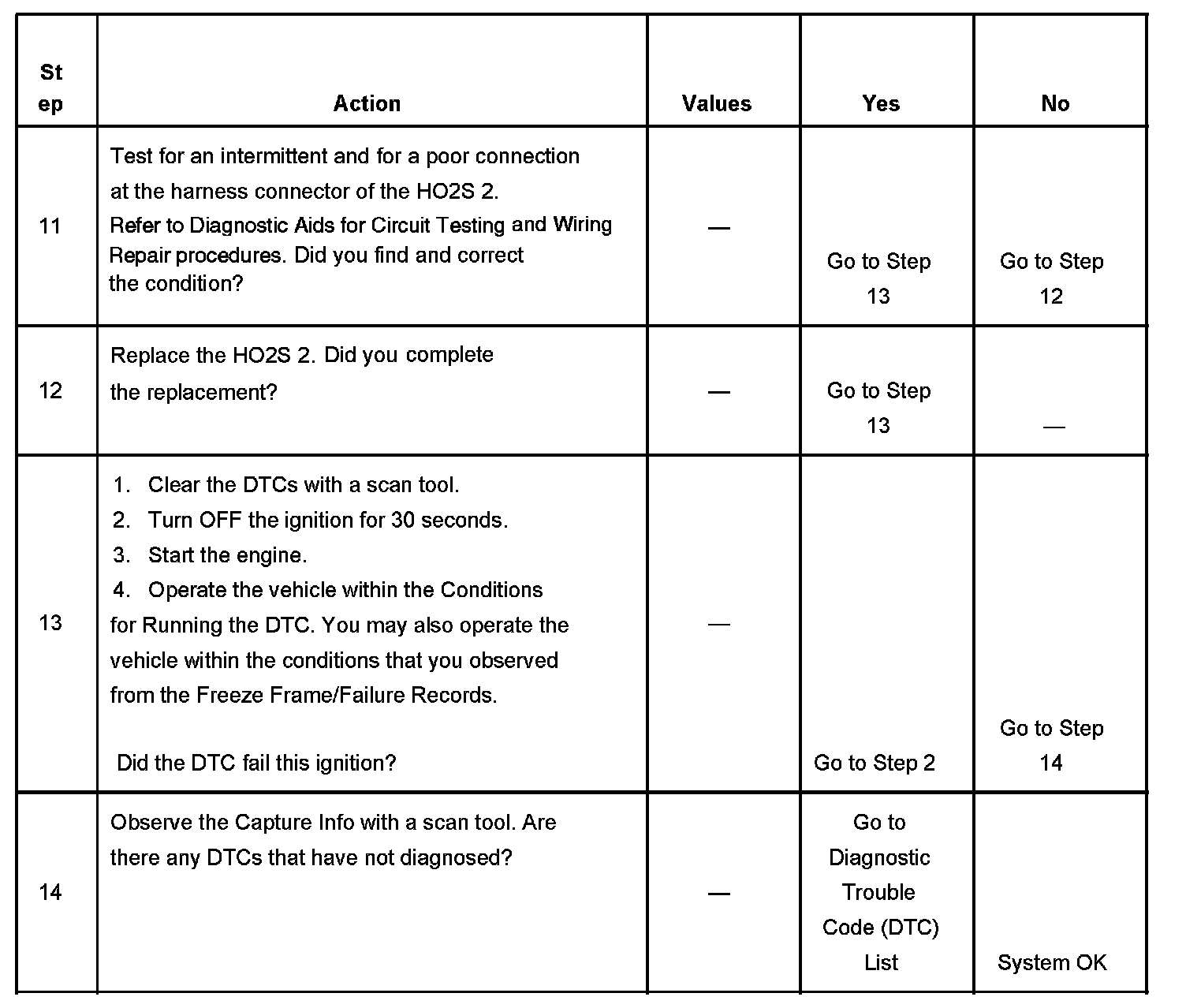 - A current DTC, Last Test Failed, clears when the diagnostic runs and passes.
