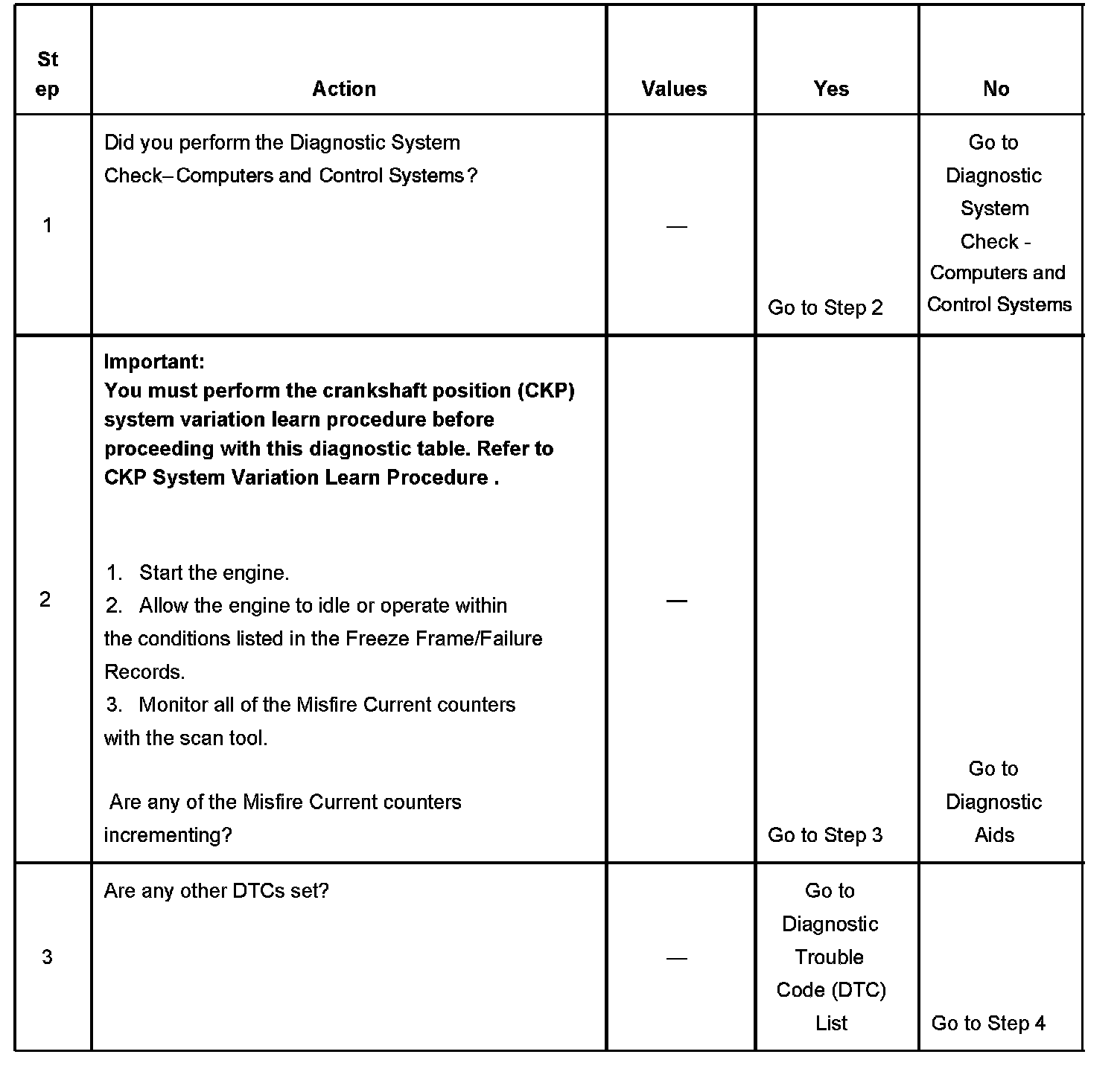 2. If the actual CKP variation values are not within the learned values, the misfire counters may increment.