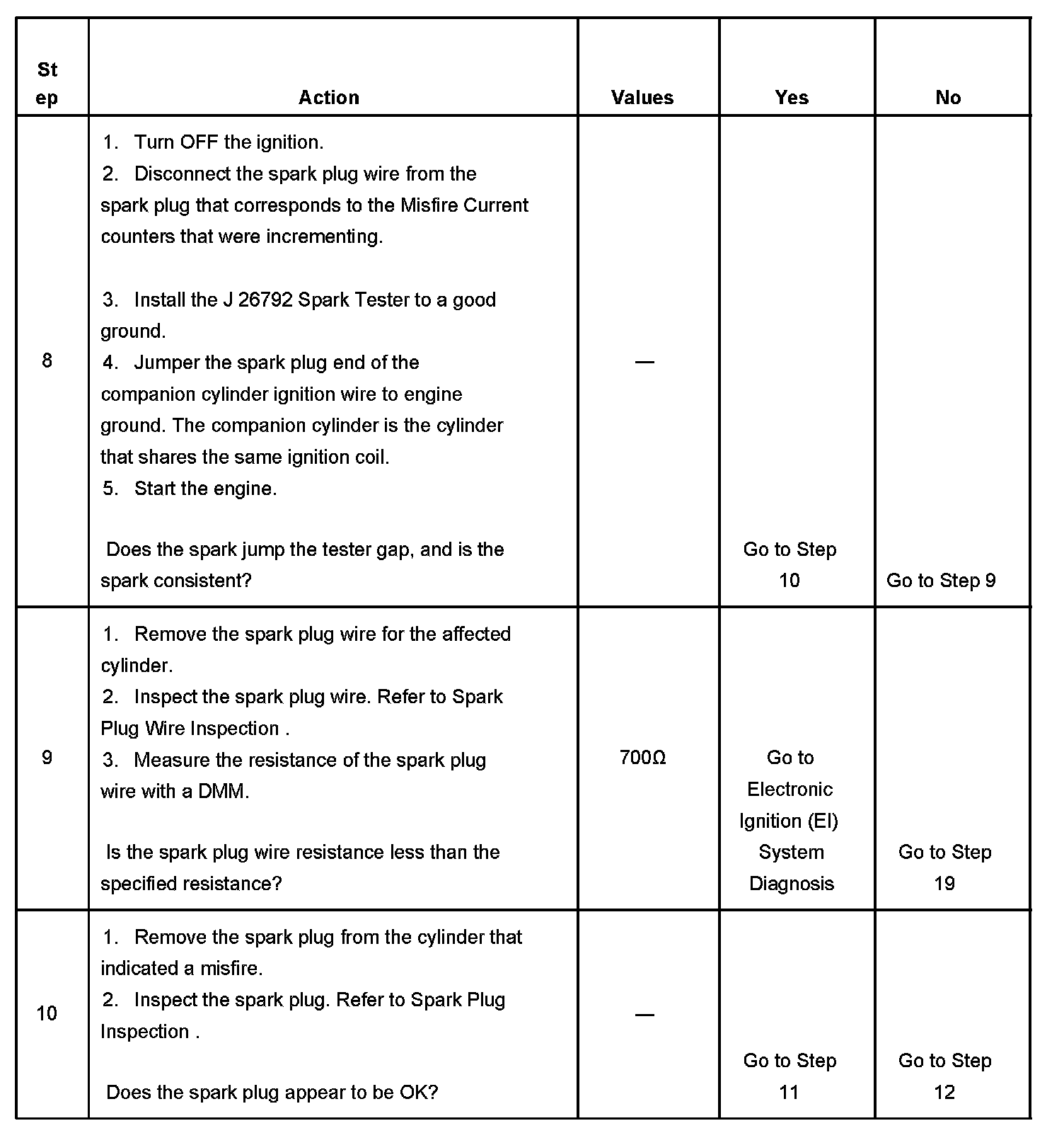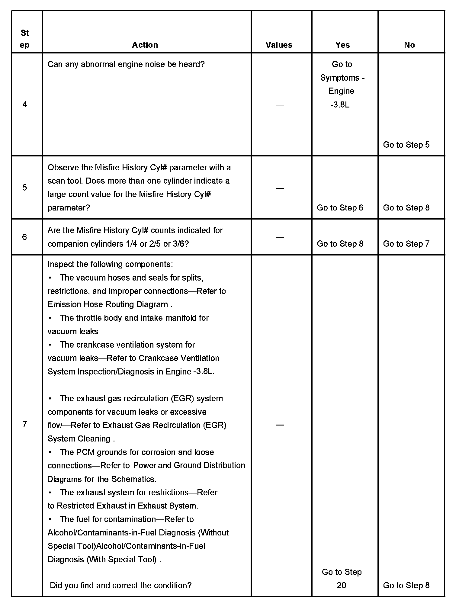 The number below refers to the step number on the diagnostic table.