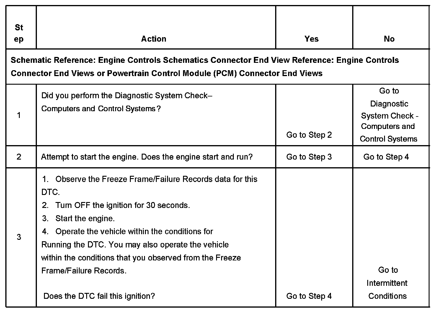 - The control module records the operating conditions at the time the diagnostic fails. The first time the diagnostic fails, the control module stores this information in the Failure Records. If the diagnostic reports a failure on the second consecutive ignition cycle, the control module records the operating conditions at the time of the failure. The control module writes the operating conditions to the Freeze Frame and updates the Failure Records.
