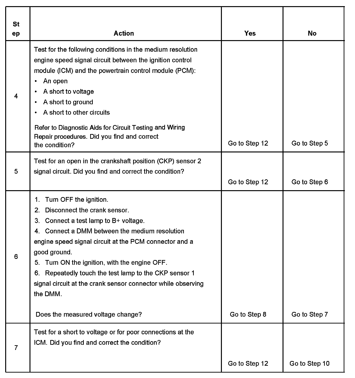- The CKP sensor 1 signal circuit