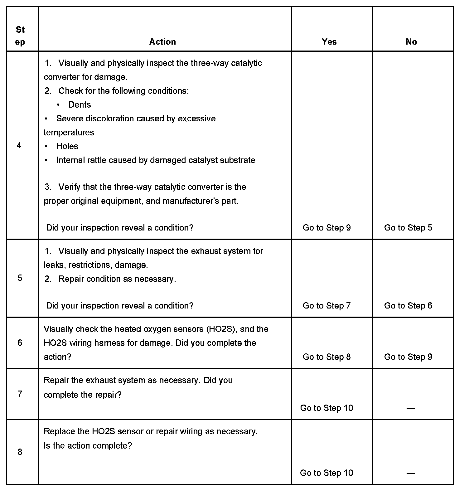 4. This step includes checks for conditions that can cause the three-way converter to appear degraded. Repair any conditions found before proceeding with this table.