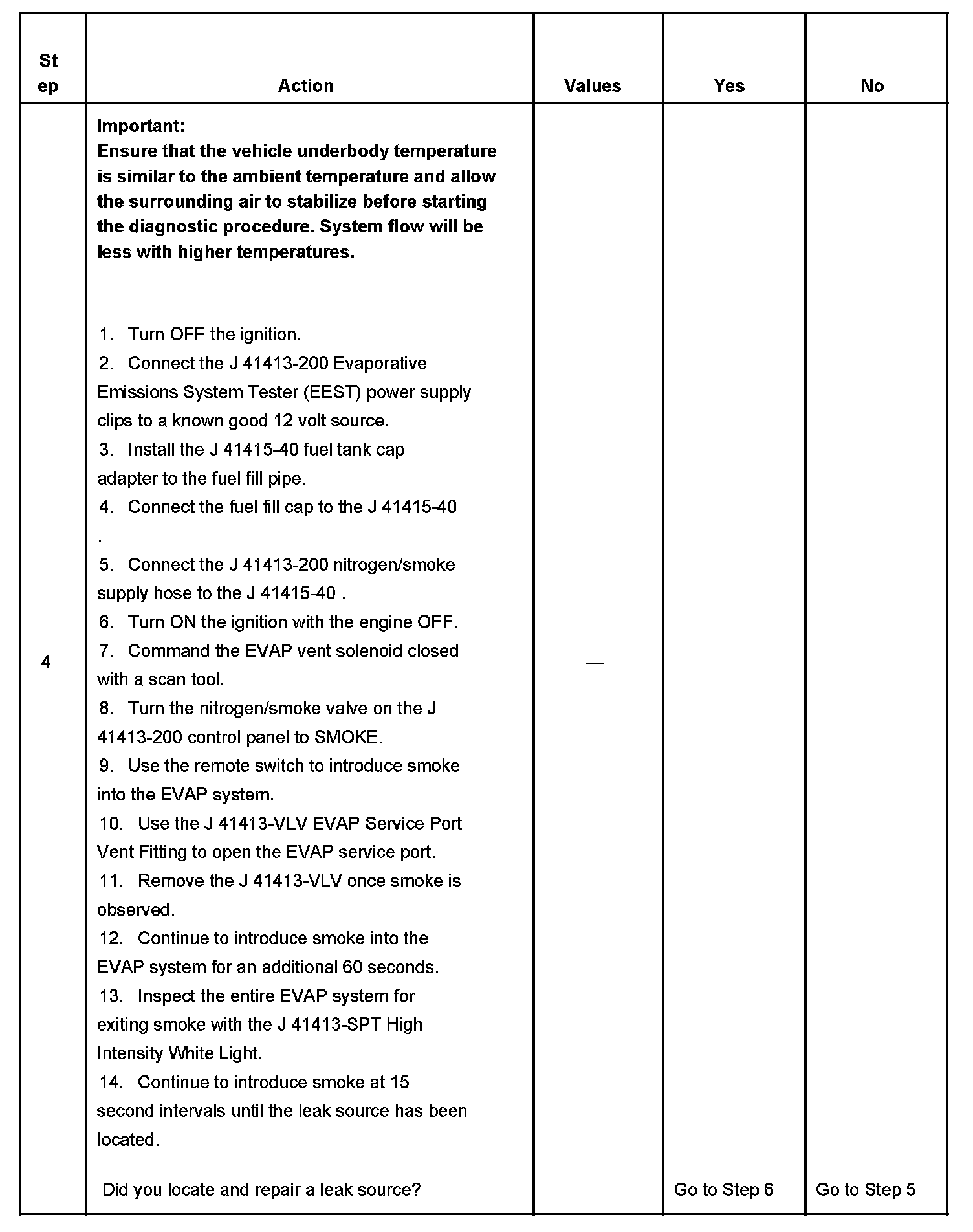- To help locate intermittent leaks, use the J 41413-200 Evaporative Emissions System Tester (EEST) to introduce smoke into the EVAP system. Move all EVAP components while observing smoke with the J 41413-SPT High Intensity White Light.