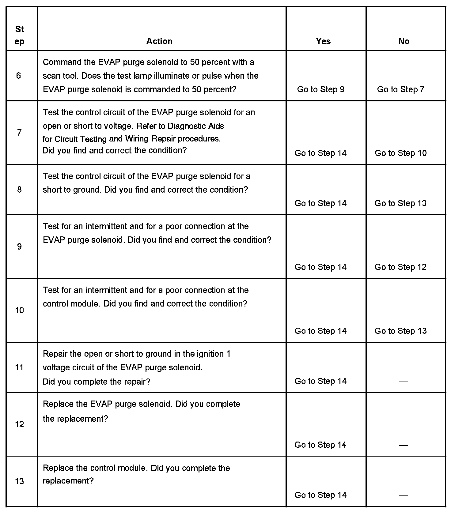 6. This step verifies that the control module is providing ground to the EVAP purge solenoid.