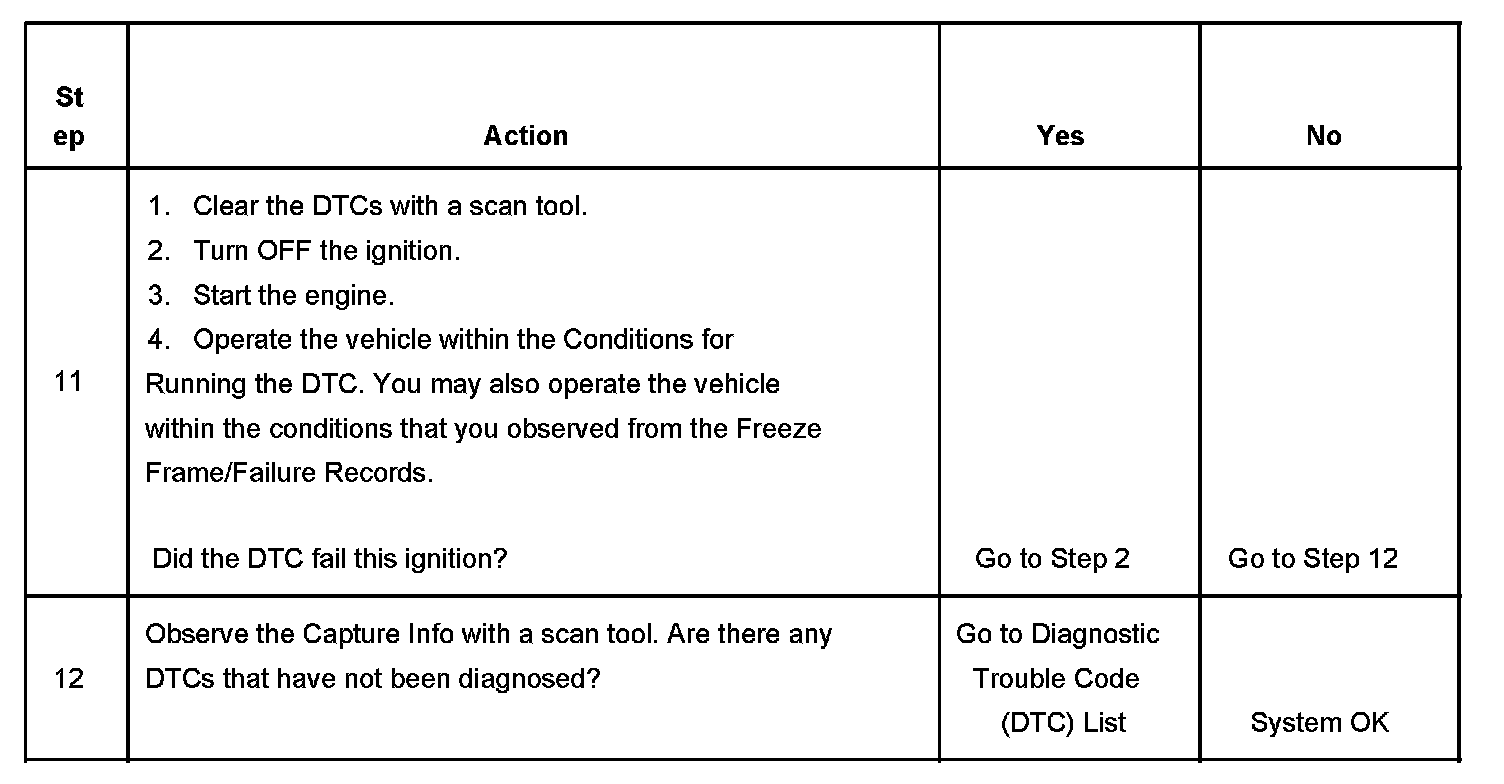 - A current DTC, Last Test Failed, clears when the diagnostic runs and passes.