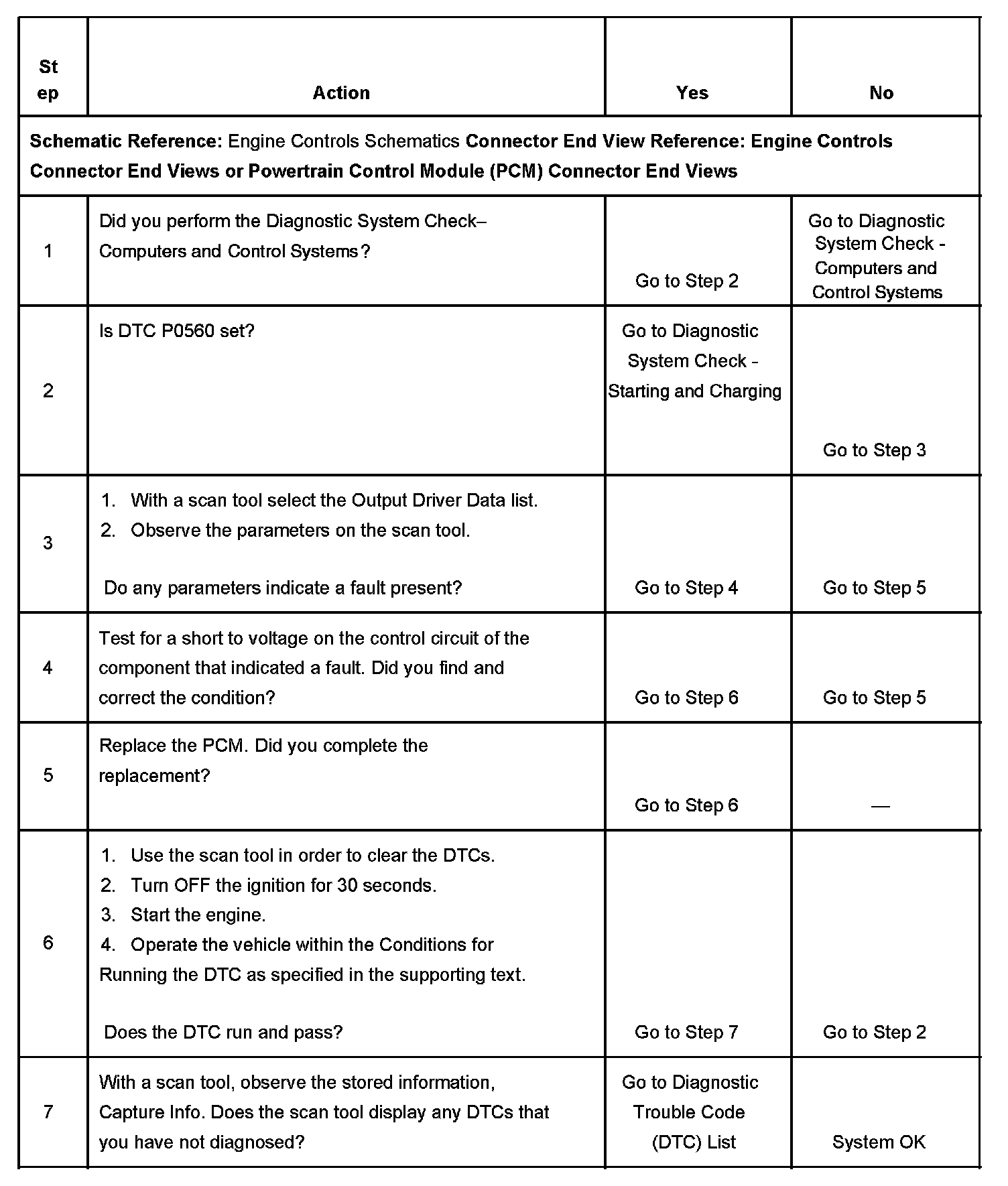 CIRCUIT DESCRIPTIONOutput driver modules (ODM) are chips that are inside the powertrain control module (PCM). ODMs provide grounded outputs that control devices. Each output has an internal feedback circuit that connects to the PCM microprocessor. ODM 1 determines if the voltage or the current may cause damage to the PCM. The PCM monitors voltage through the ignition 1 input. Any incorrect current that is on a circuit to the ODM will cause the ODM to report this diagnostic trouble code (DTC).