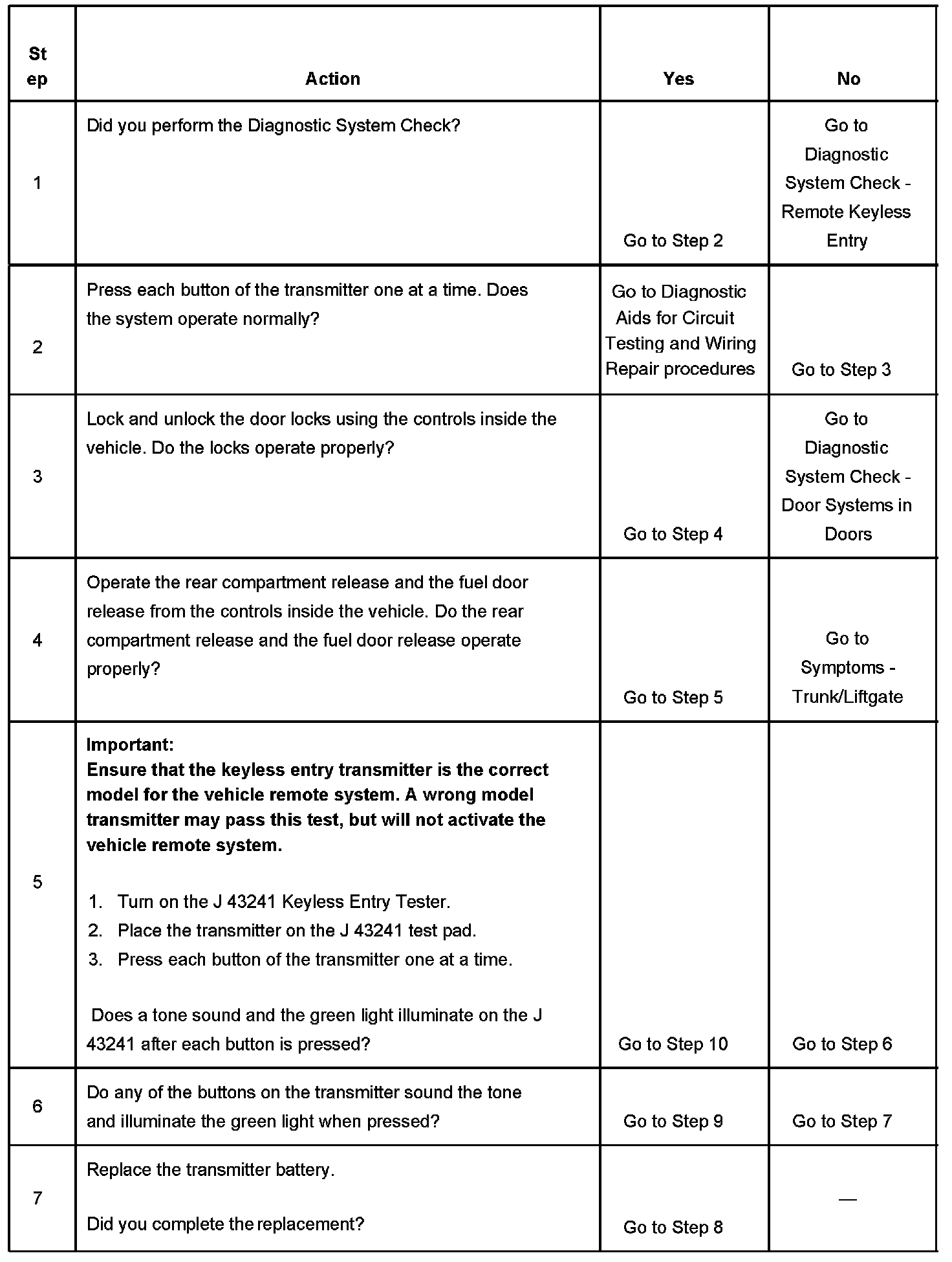 Keyless Entry System Inoperative