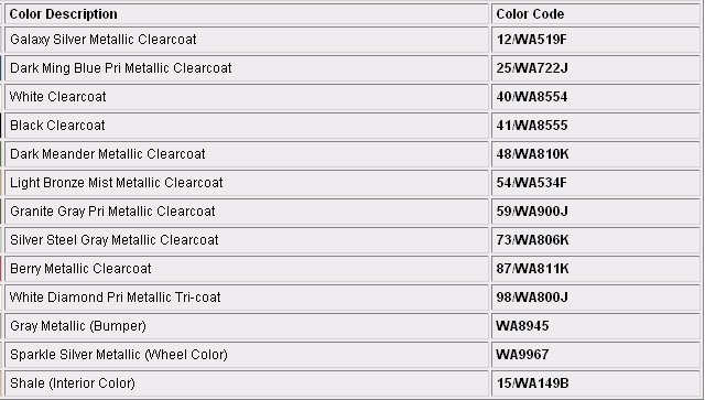 Paint Code Charts