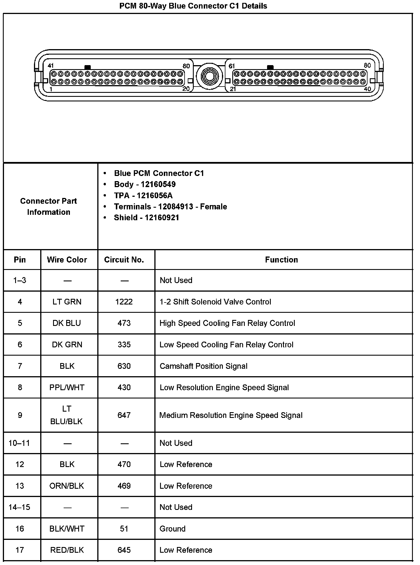 PCM 80-Way Blue Connector C1 Details Part 1: