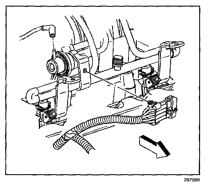 IMPORTANT: When servicing the fuel rail assembly, precautions must be taken to prevent dirt and other contaminants from entering the fuel passages. The fittings should be capped, and the holes should be plugged during servicing.
