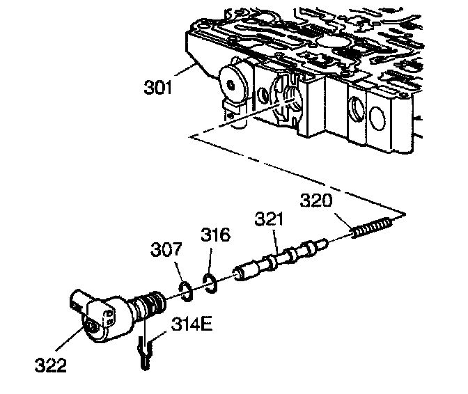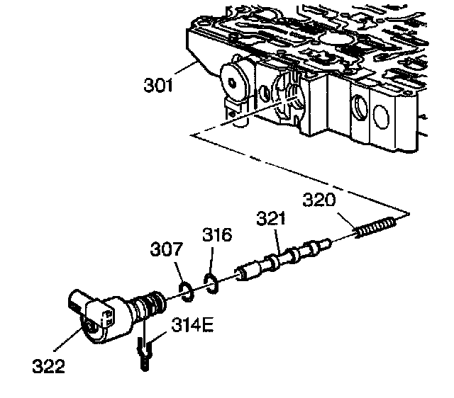 1. Install new O-ring seals (307, 316) onto the Pressure Control (PC) solenoid valve (322), if they had been removed.