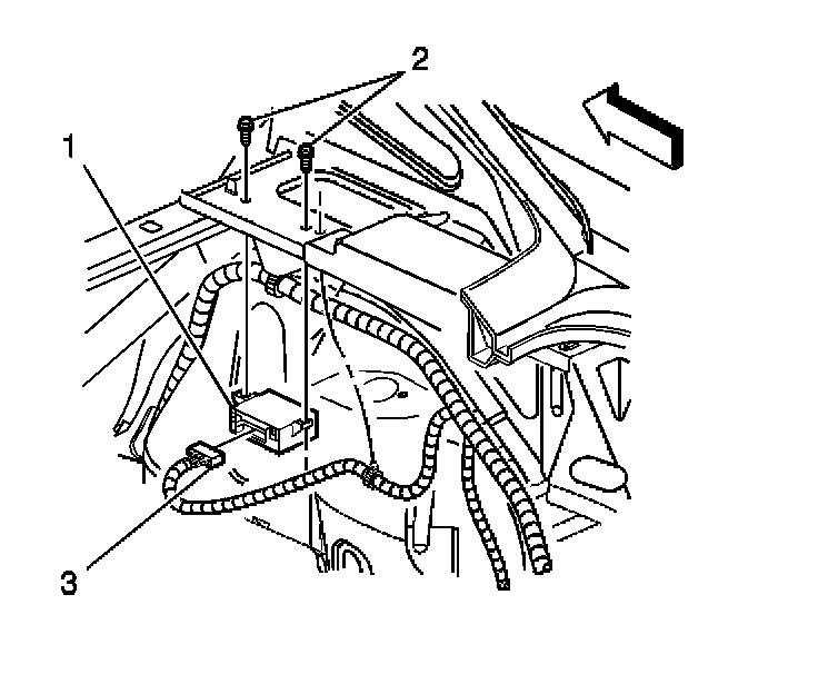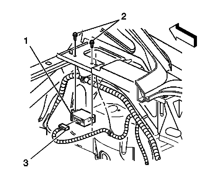 2. Remove the fasteners (2) securing the rear park assist module (1).