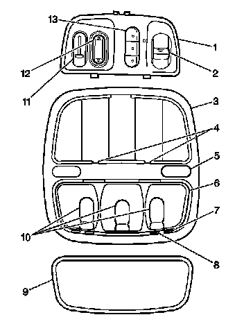 Important: Do not let the overhead compartment assembly hang by the wiring.