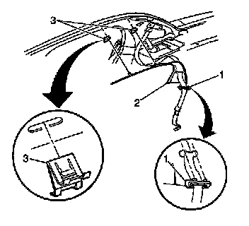 1. Pull away the sail panel (2) in order to remove the sail panel from the rear shelf panel.