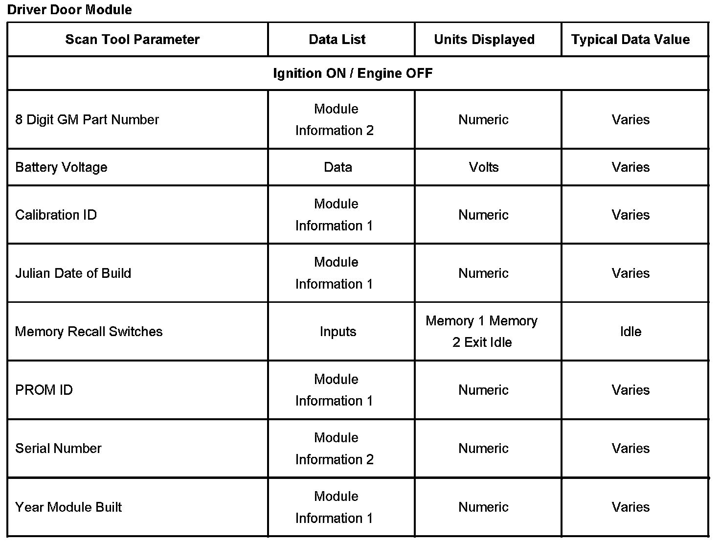 Driver Door Module: