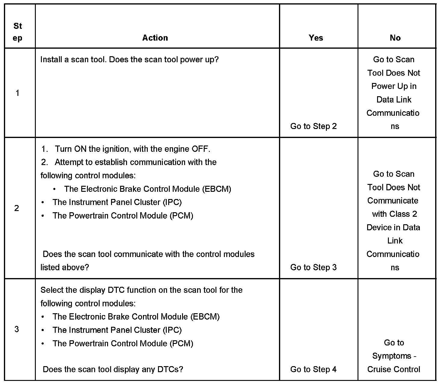 2. Lack of communication may be due to a partial malfunction of the class 2 serial data circuit or due to a total malfunction of the class 2 serial data circuit. The specified procedure will determine the particular condition.