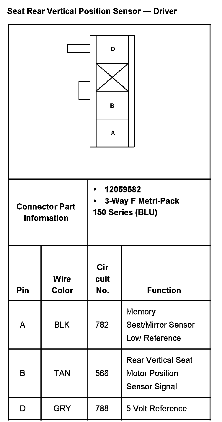 Seat Front Vertical Position Sensor-Driver(With RPO Code A45):