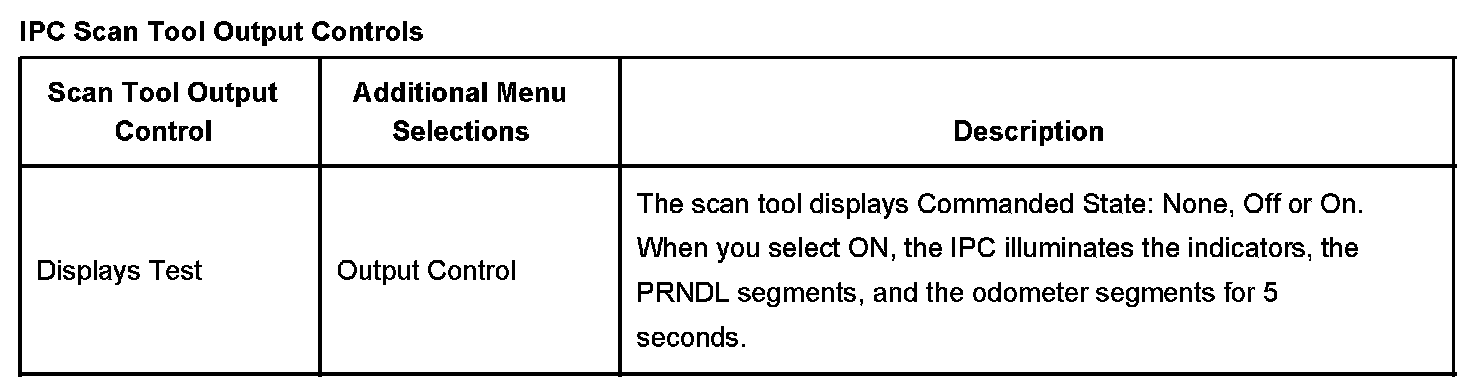 Scan Tool Output Controls - Instrument Panel Cluster (IPC)