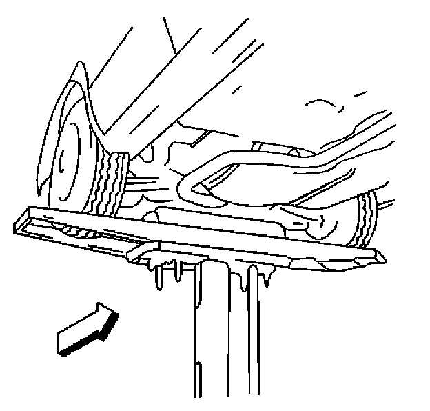 NOTE: Ensure that the front suspension-contact lift points contact the lower control arms ONLY where identified. Failure to follow this precautionary step could result in damage to the lower control arm stabilizer link bracket.